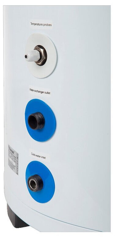 Корпус ЭВН состоит из стального бака теплоизолированного экологически чистым пенополиуретаном, и двух резьбовых патрубков для подачи холодной воды (с синим кольцом) и выпуска горячей (с красным кольцом). Внутренний бак имеет специальное стекло фарфоровое покрытие, надежно защищающее внутреннюю поверхность от химической коррозии.