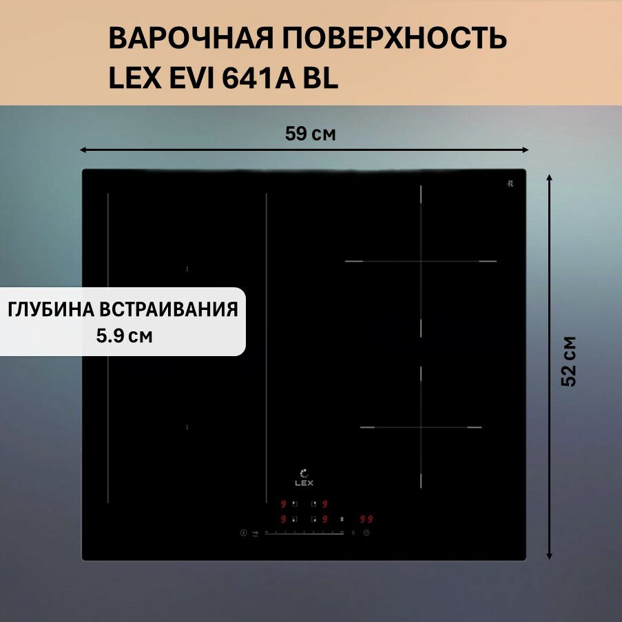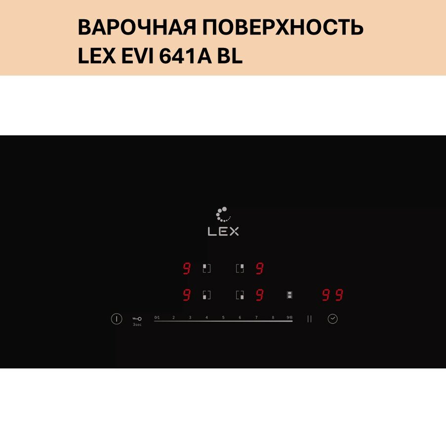Электрическая индукционная варочная панель LEX имеет четыре конфорки и сенсорное управление. Ширина для встраивания 600 мм. Современный индукционный нагревательный элемент демонстрирует высокую скорость нагрева, существенно экономит электроэнергию и сокращает время приготовления блюд. Панель имеет FlexZone расширенной конфигурации, которую удобно использовать для посуды нестандартных размера и формы. Модель снабжена кнопкой блокировки панели, индикатором остаточного тепла, защитой от перегрева, распознаванием наличия посуды. Наличие функции Boost позволяет ускорить процессы приготовления. Функция StopnGo дает возможность при необходимости одним нажатием приостановить и продолжить работу с сохранением температурных режимов и таймера.