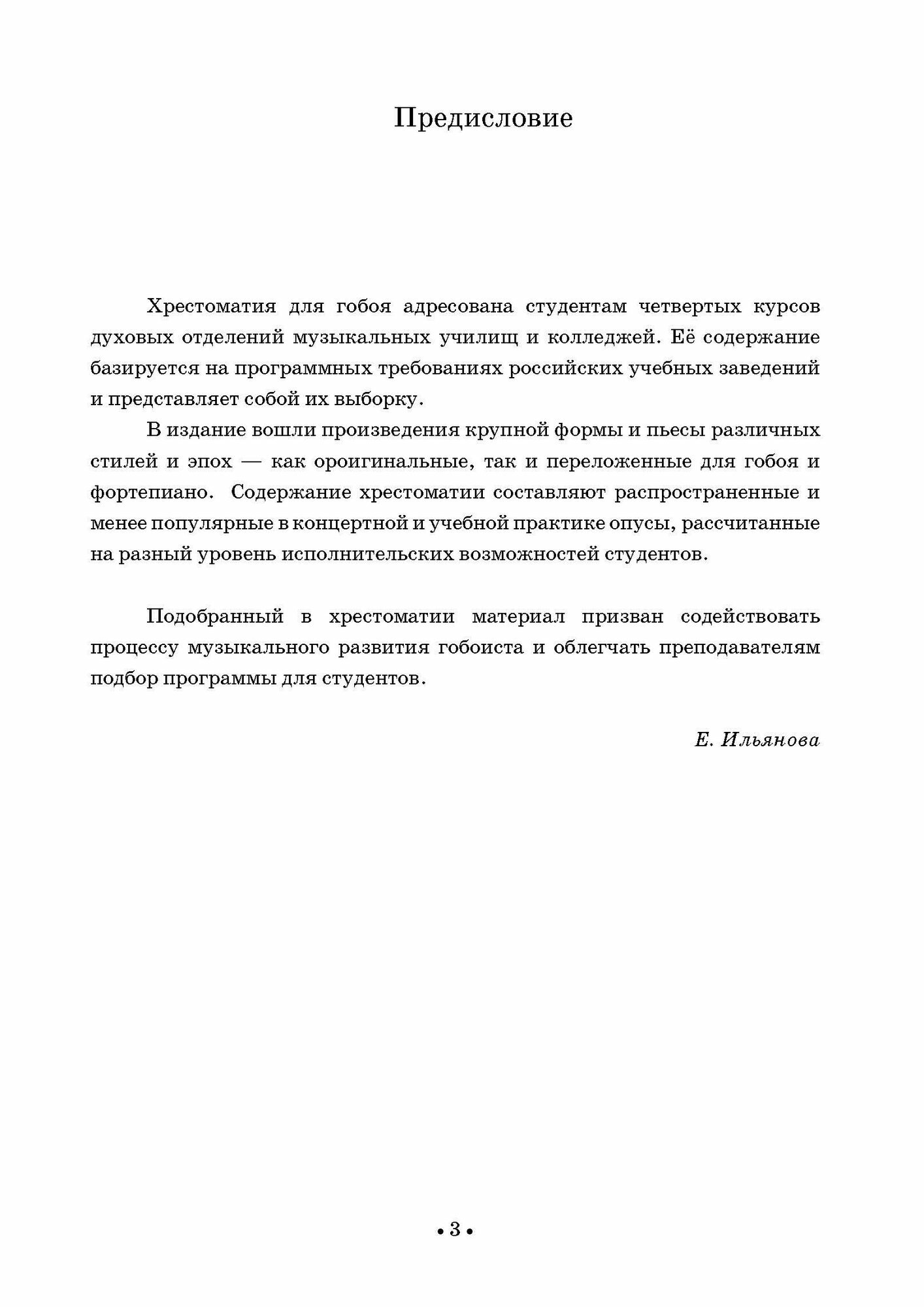 Хрестоматия содержит произведения крупной формы и пьесы. В сборник вошли сочинения, входящие в программы музыкальных училищ, а также опусы, менее популярные в педагогической практике. Издание адресовано преподавателям и студентам-гобоистам четвертых курсов музыкальных училищ. Составитель: Ильянова Е. А.