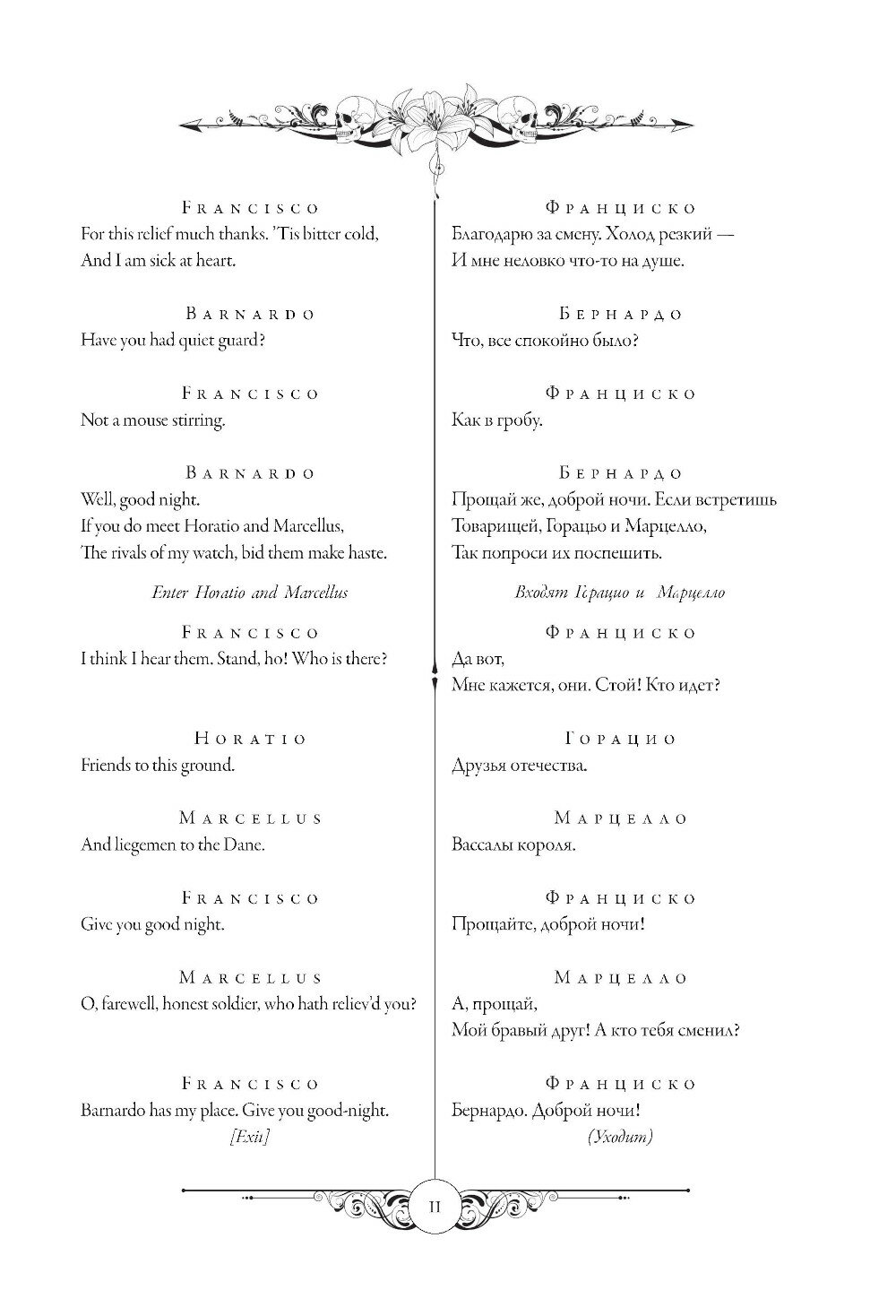Представьте, что вы советник, или предатель, или воин, верный королю — мертвому королю — смертному королю. Или, быть может, не верный, или верный не королю, или… На сцене этой книги немало ролей, и любая из них ваша — если отважитесь. Есть среди них маска скорбящего принца, одолеваемого сомнениями и гневом. Отца его предали и убили, и принц жаждет мести — но не убийства. Другая роль — шотландский тан. Дьявол нашептывает ему обещания величия, к которому путь лежит через голову короля. Но смерти одного недостаточно, и тан захлебывается в пролитой крови. Готовы примерить их маски? В настоящем издании оригинальный текст бессмертных трагедий Уильяма Шекспира «Макбет» и «Гамлет» приводится с параллельным переводом А. И. Кронеберга и С. М. Соловьева в сопровождении утонченных гравюр XIX века, выполненных такими мастерами как Кенни Мидоус, Джон Гилберт и Генри Силус, а также гравюрами из иллюстрированного издания Шекспира под редакцией Чарльза Найта. Для удобства чтения каждая строфа на русском языке расположена напротив соответствующей строфы на английском. Такое расположение позволит без труда сравнивать текст оригинала с переводом, обращать внимание на трудности, с которым сталкивался переводчик, и отмечать наиболее точно переведенные фрагменты. Твердый переплет с золотым тиснением приятен на ощупь благодаря рельефным элементам и контрасту матовых и глянцевых поверхностей, а утонченное оформление внутри, гравюры и золотистая лента ляссе добавляют книге изысканность и привлекательность. Ее можно приобрести не только для своей коллекции, но и в качестве подарка дорогим и близким людям.