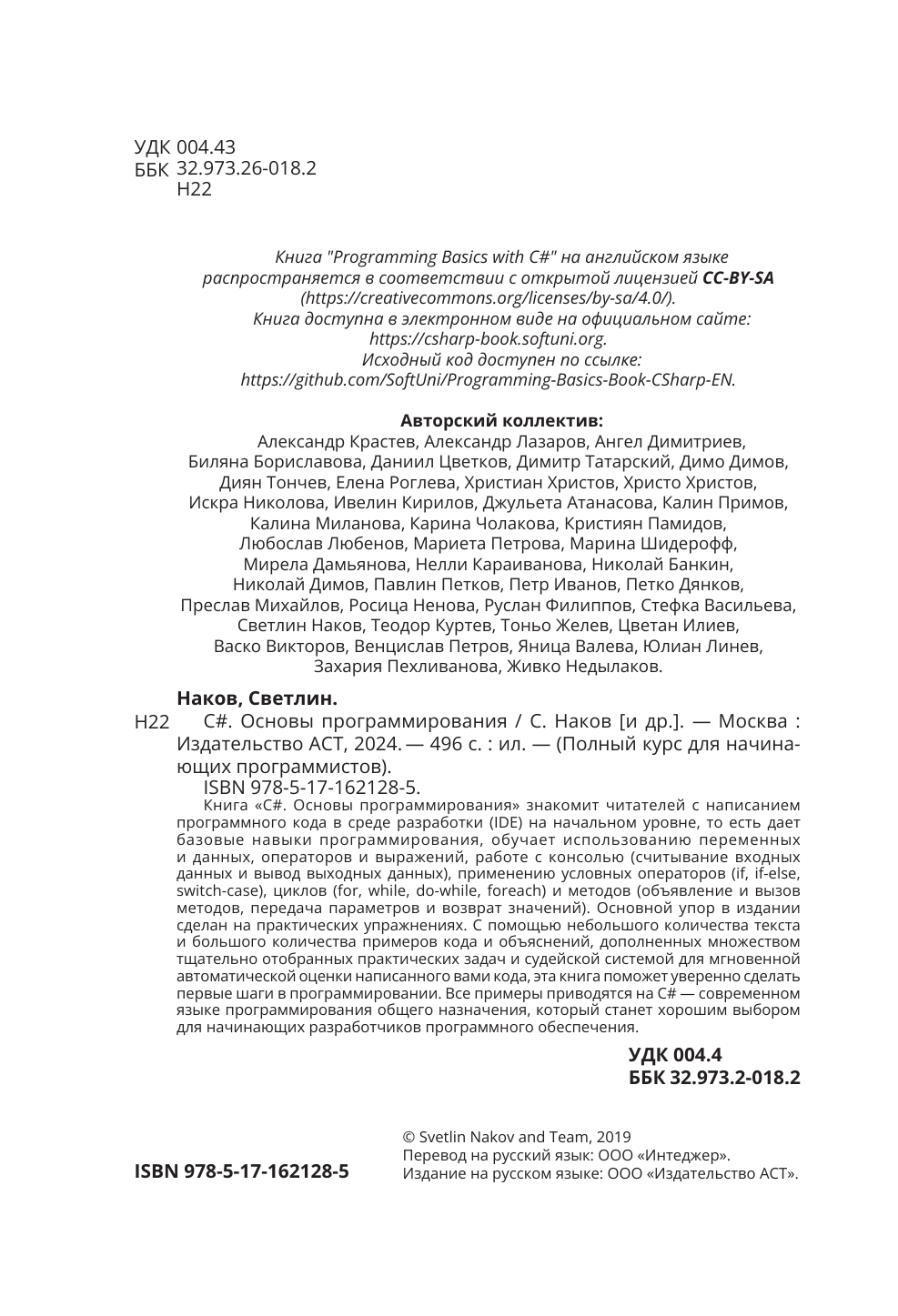 Основы программирования на C# (Светлин Наков); Издательство АСТ, 2019