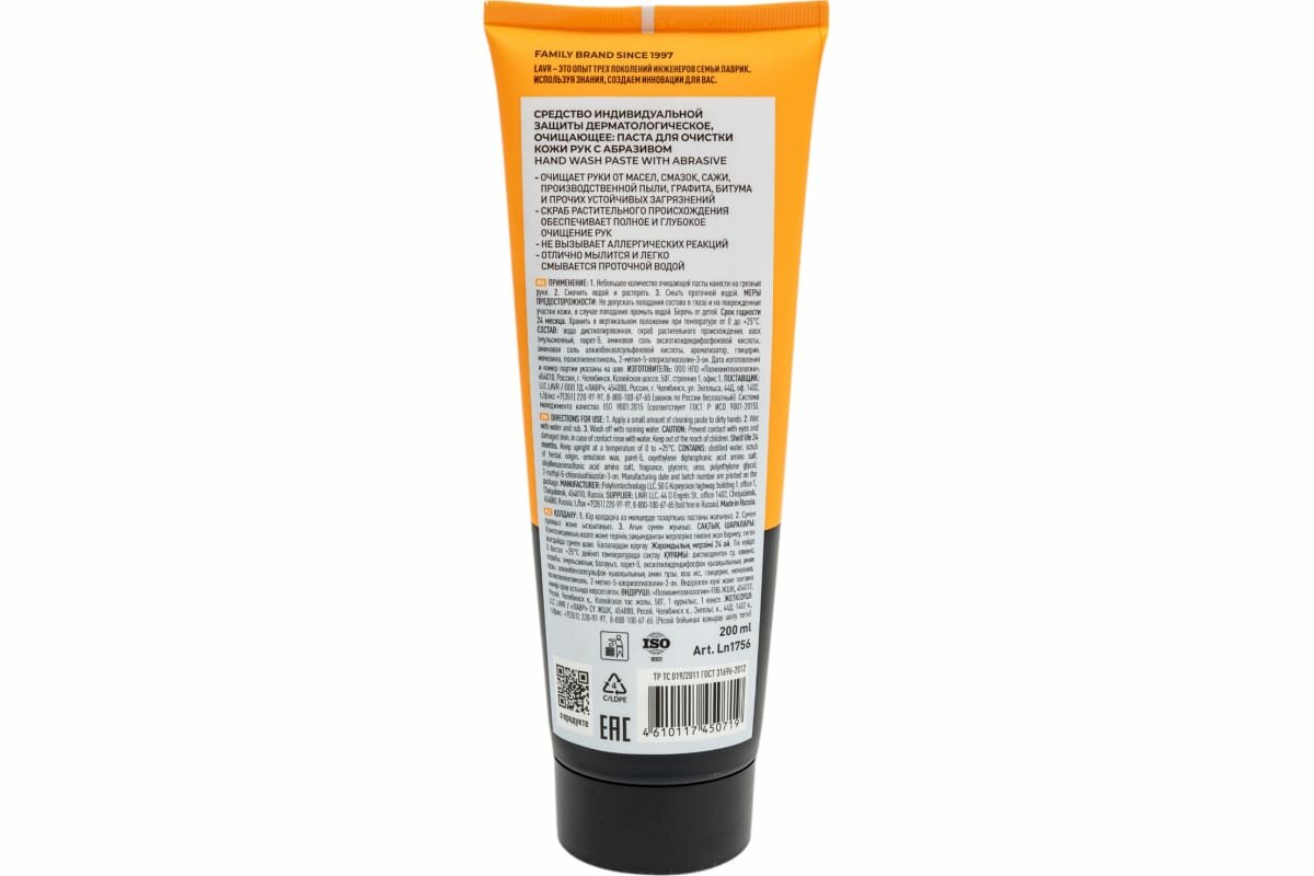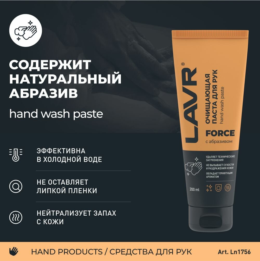 Очищающая паста для рук LAVR с натуральным образивом 200 мл