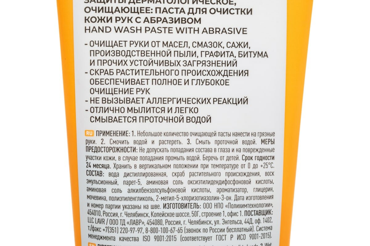 Паста для очистки рук является необходимым средством для обеспечения безопасности и гигиены в условиях производства и при обслуживании техники. Натуральный абразивв составе отшелушивают омертвевшие клетки кожи и эффективно удаляет грязь, масла, смазки и другие техническиезагрязнения с кожи.