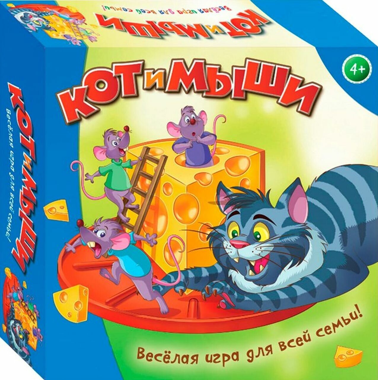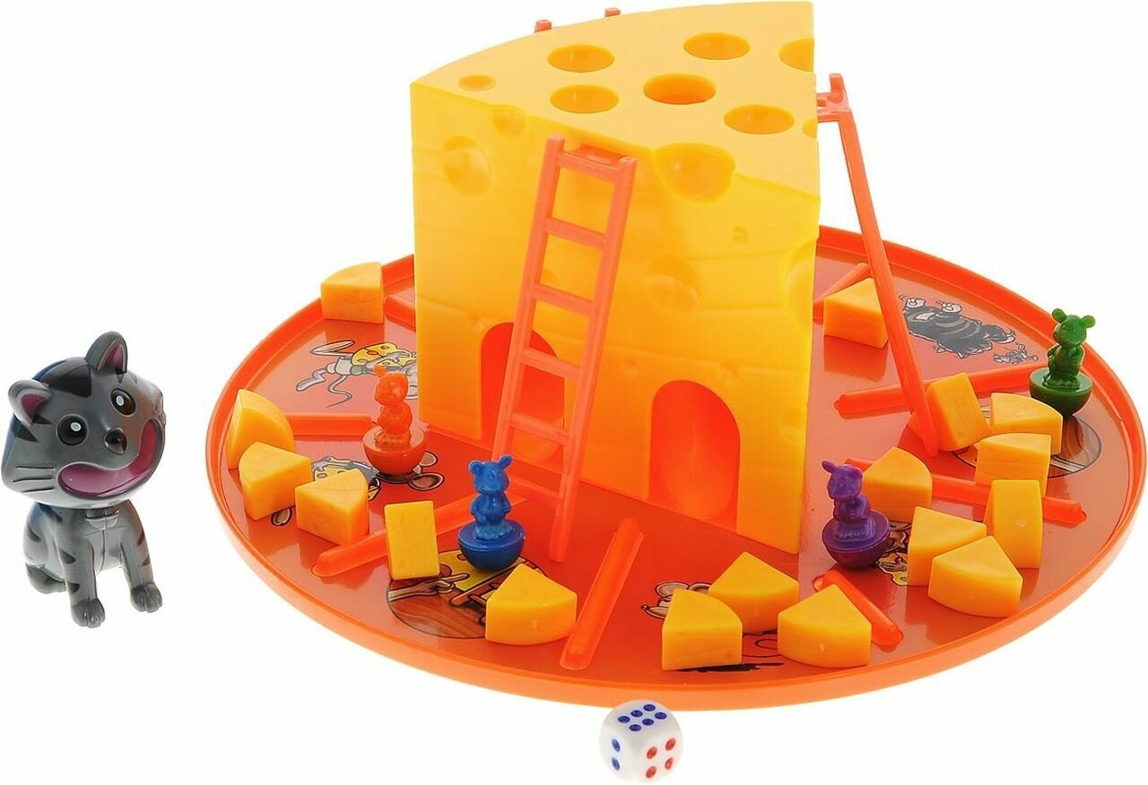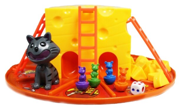 Помоги мышкам убежать от кота, прихватив при этом парочку кусков сыра. Задача игрока - первым собрать 5 кусочков сыра. Игра для детей от 4 лет, рассчитанная на 2-4 игрока. Время игры – 20 минут. Краткие правила игры: В свой ход игрок бросает кубик и движется по часовой стрелке на то количество секторов игрового поля, которое выпало на кубике. В зависимости от того, на каком секторе игрового поля оказалась фигурка, игрок должен выполнить одно из действий.