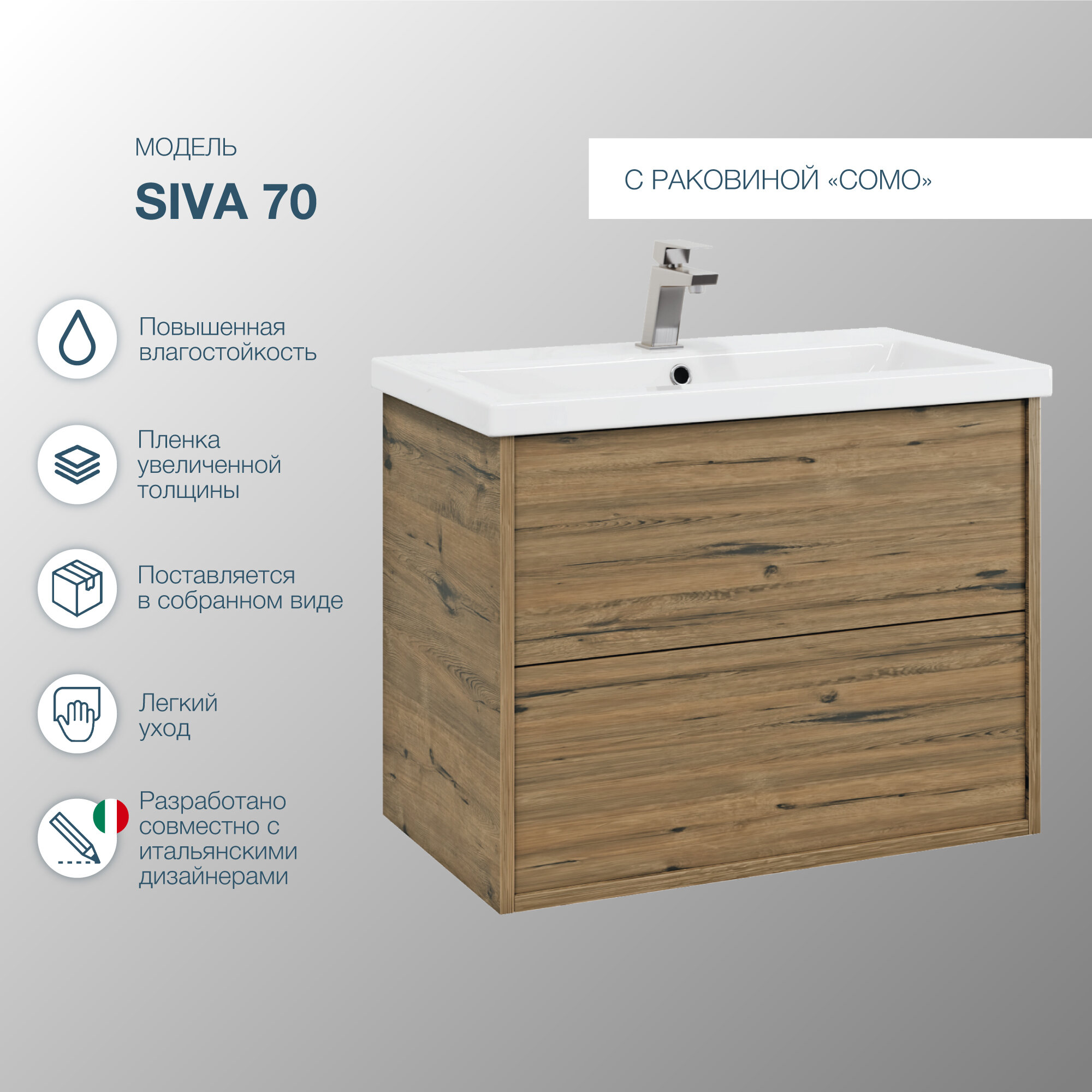 Тумба с раковиной SanStar Siva 70 подвесная дуб веллингтон табак (раковина Como 70) Siva 434.1-1.4.1.