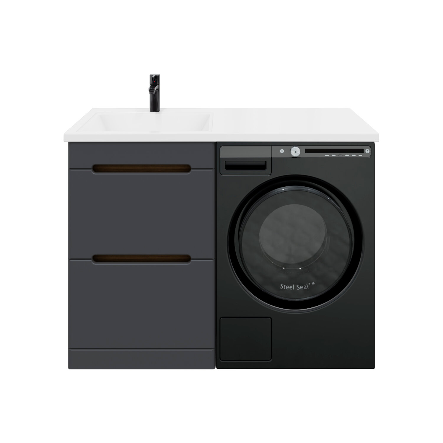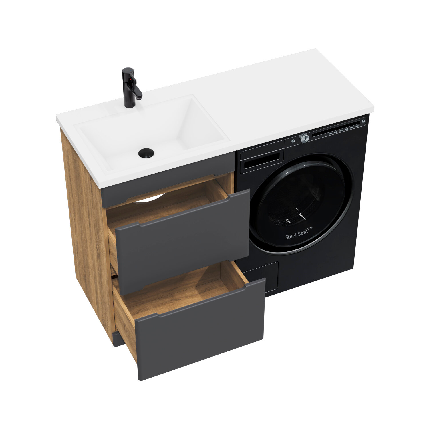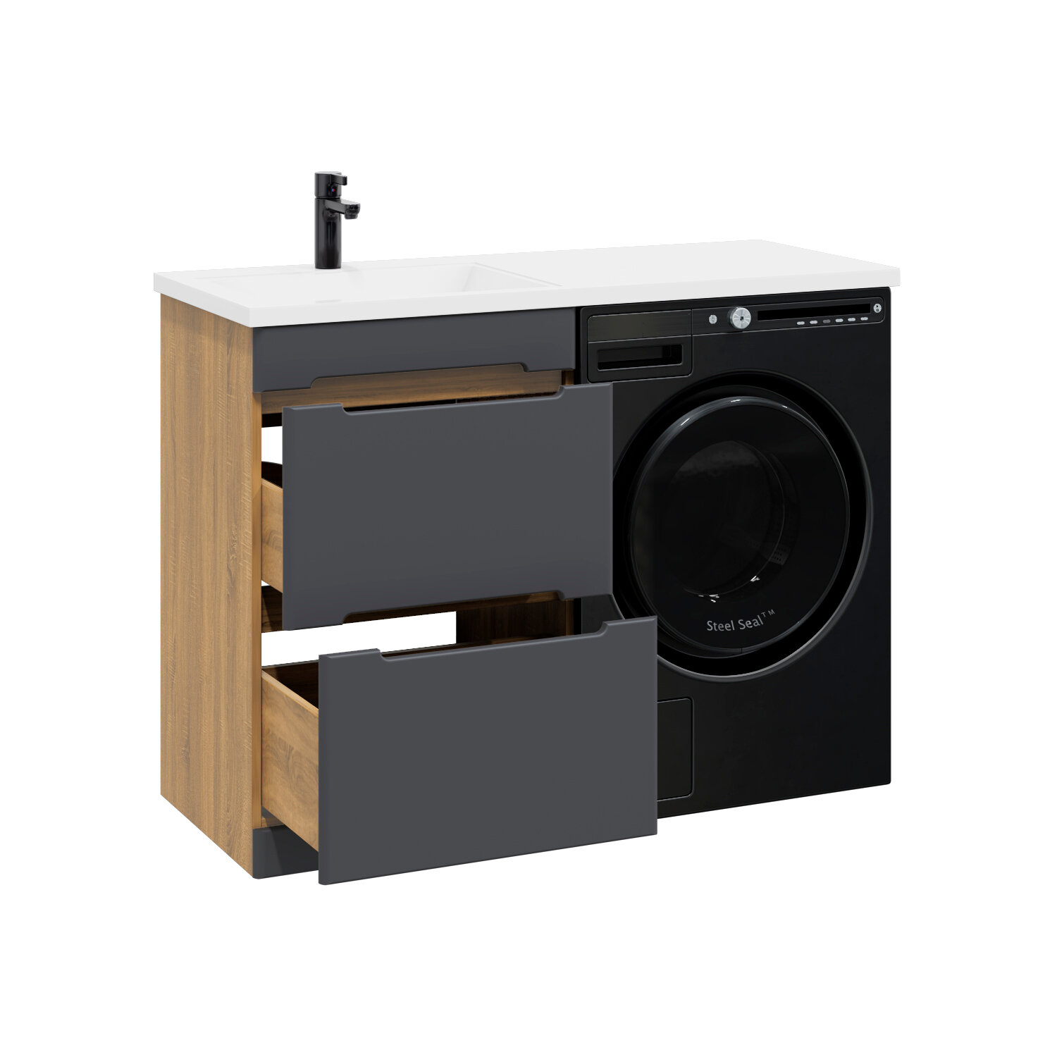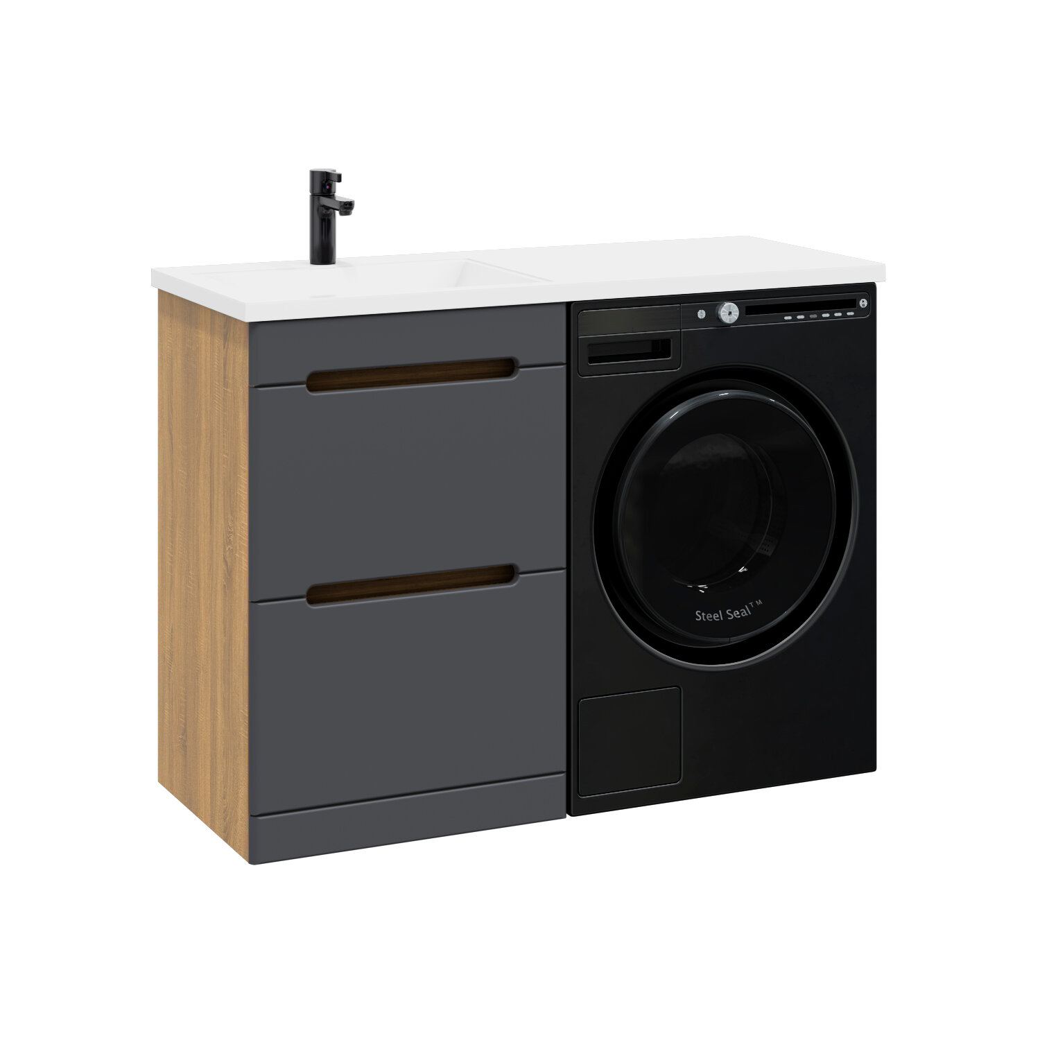 Тумба с раковиной SanStar Darko 60 напольная дуб вотан/графит софт (раковина Даллас 120 L) Darko 431.1-1.4.1.