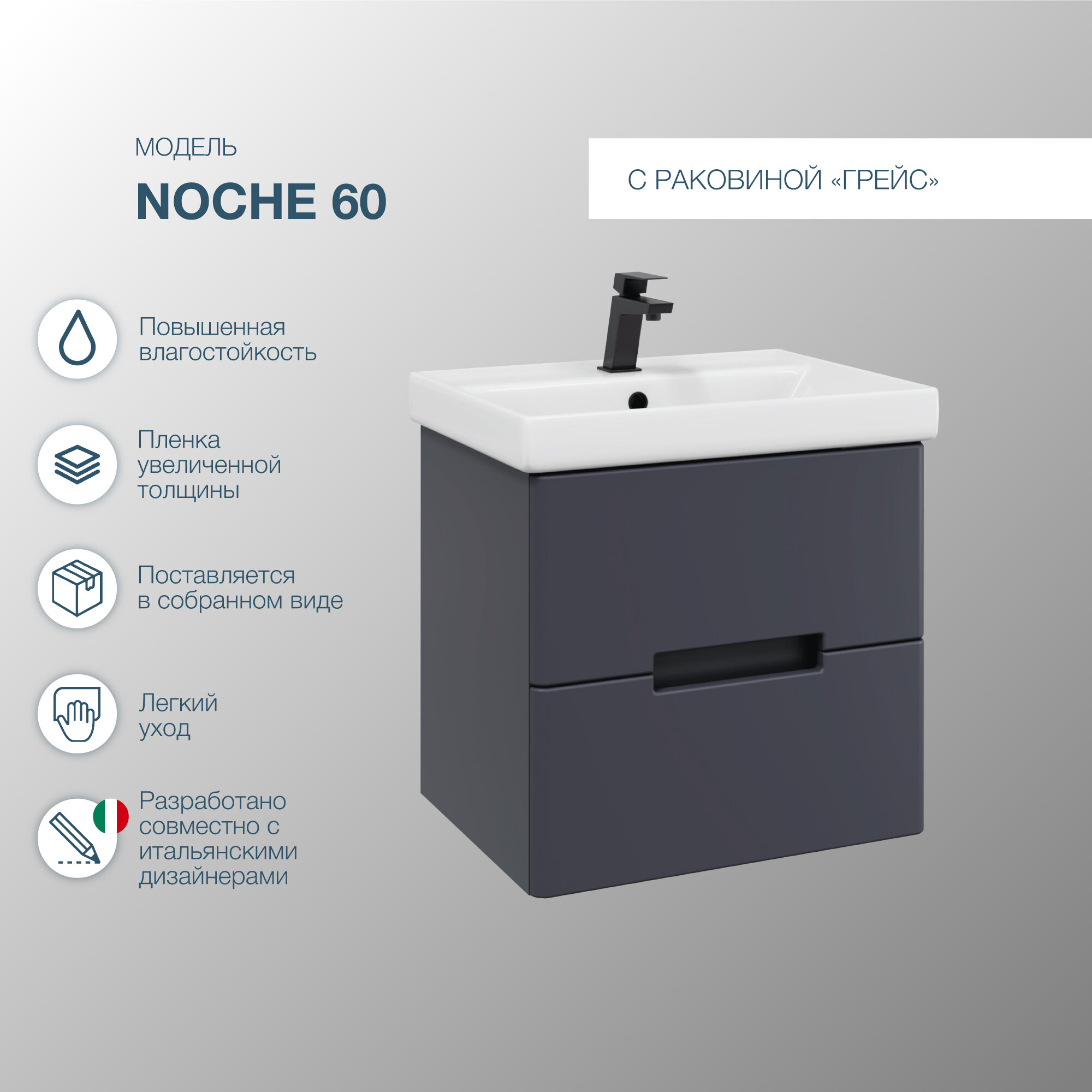 Тумба с раковиной SanStar Noche 60 подвесная графит софт (раковина Грейс 60) Noche 422.1-1.4.1.