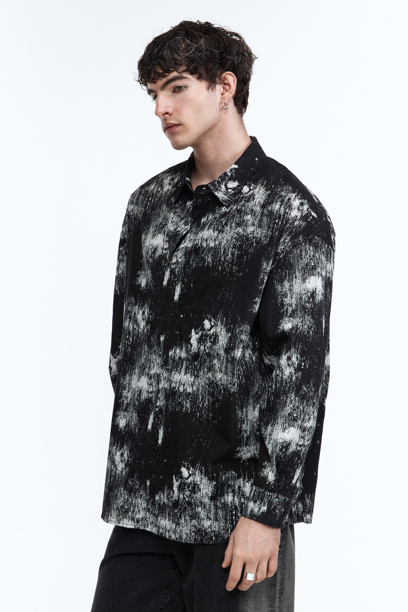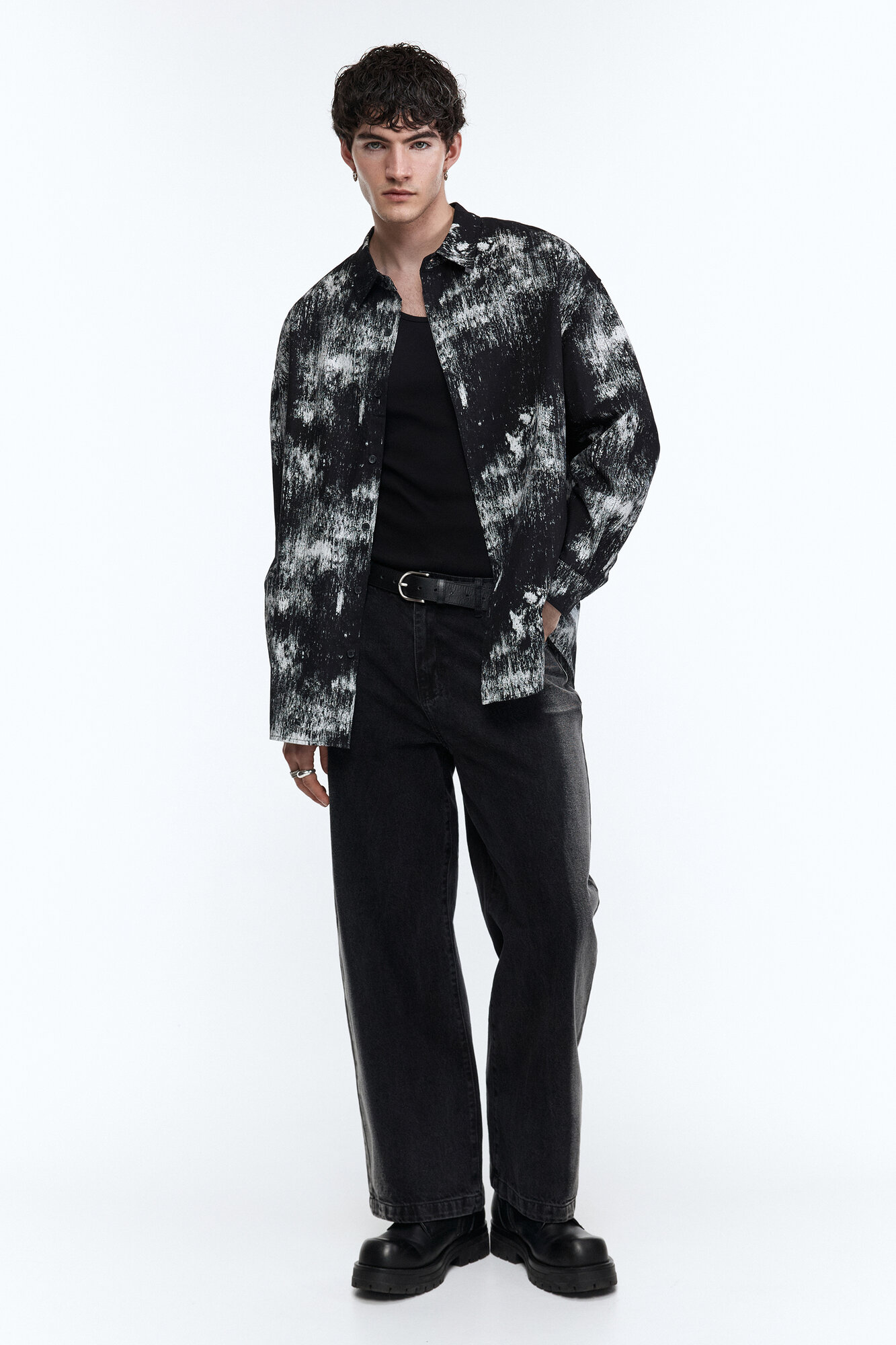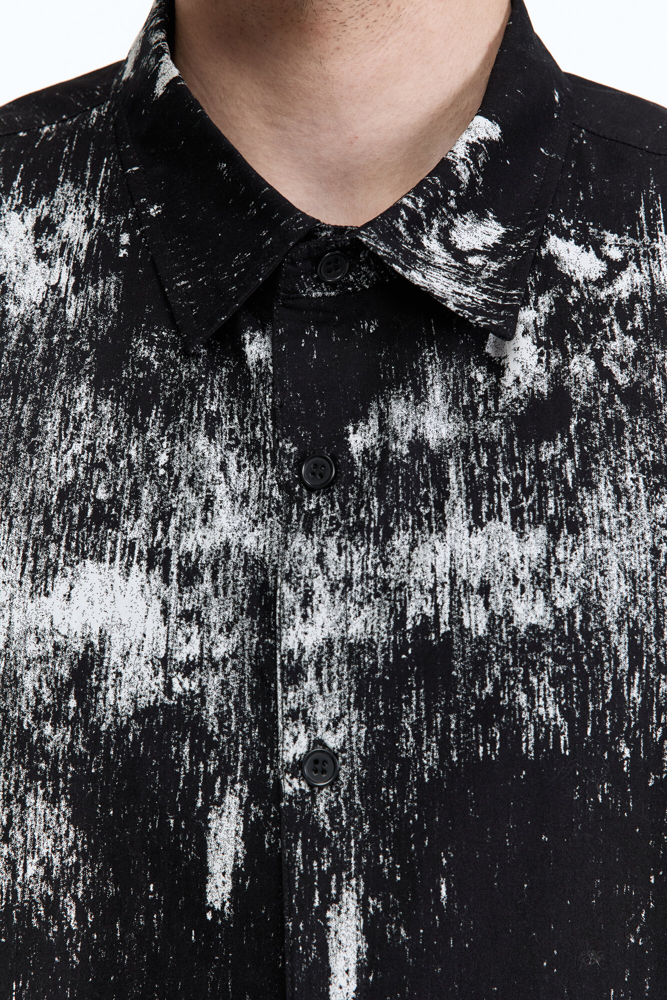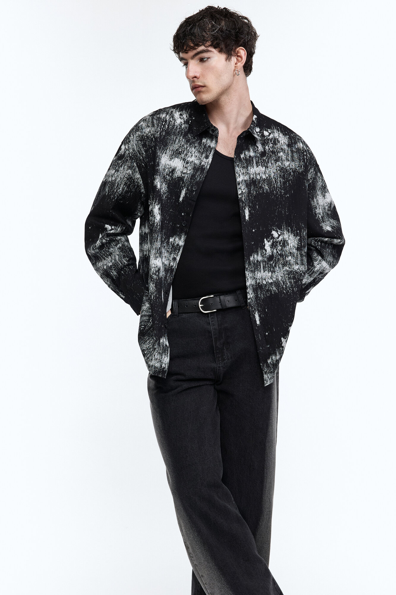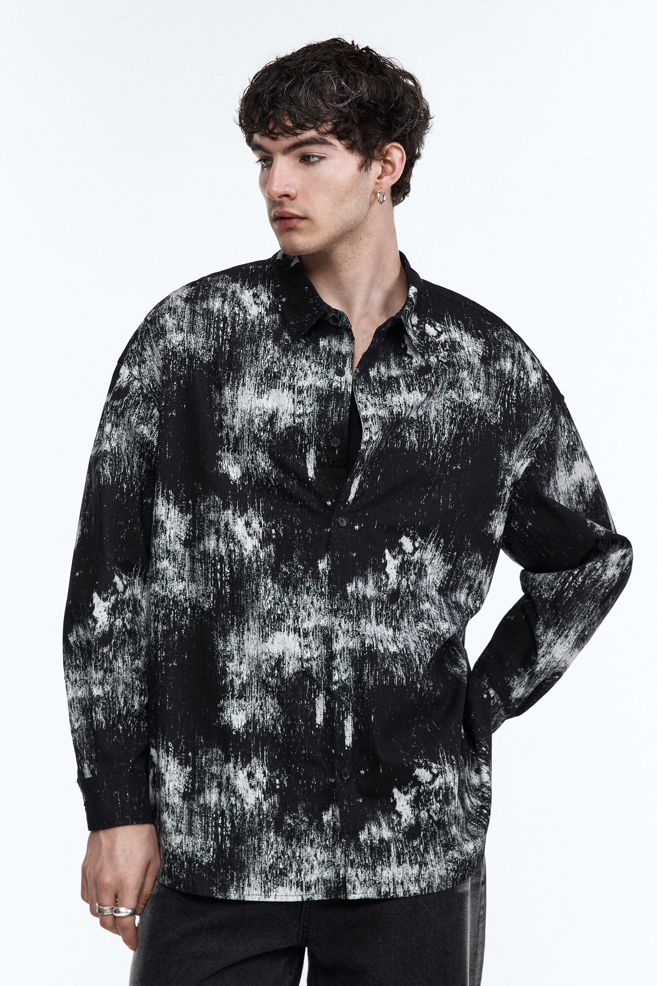 - Рубашка oversize с эффектом тай-дай. Удлиненная мужская рубашка свободного кроя oversize из плотной 100% хлопковой ткани с гладкой текстильной фактурой