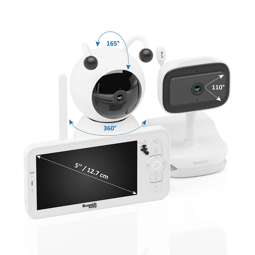 Видеоняня Ramicom VRC300400C – это видеоняня с большим экраном на родительском блоке и двумя камерами, может подключаться к Wi-Fi сети для наблюдения не только внутри дома, но и на любом отдалении от него с помощью приложения на смартфоне или планшете с выходом в интернет и возможностью записи видео и звука на карту памяти с мобильного устройства или с родительского блока. Устройство оснащено датчиком движения, датчиком звука, гигрометром, термометром, ночным видением, двухсторонней связью и другими не важными функциями. Все это обеспечивает надёжный мониторинг, когда ваш малыш спит или играет.