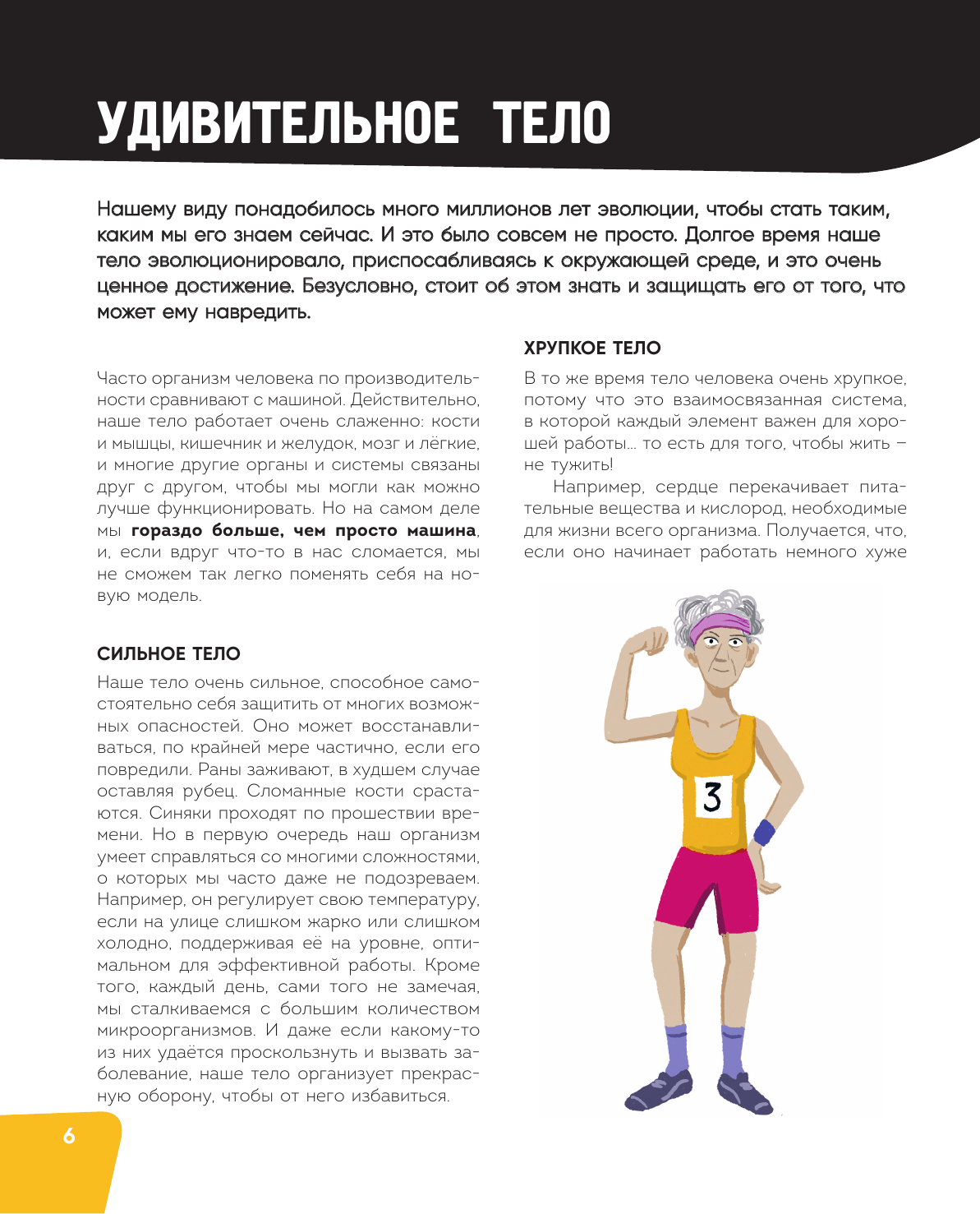 Большая яркая энциклопедия - прекрасный помощник для школьника в изучении устройства тела человека. Ребенок узнает, кем были дальние предки человеческого рода, каким образом мозг получает информацию от кончиков пальцев ног, как работает наша иммунная система, что такое биологическая память и где она записана. Юный читатель найдет ответы на все вопросы и станет настоящим ученым! Эта анатомическая энциклопедия отличается прекрасным взвешенным изложением научных фактов и дает полноценное представление о причинах, структуре, процессах, не перегружая юного читателя. Разнообразная подача информации не даст заскучать: в книге множество увлекательных схем всех систем органов, древо эволюции человека, а также словарь полезных слов. Издание рекомендовано детям среднего школьного возраста. Красочная увлекательная книга станет прекрасным подарком по любому поводу!