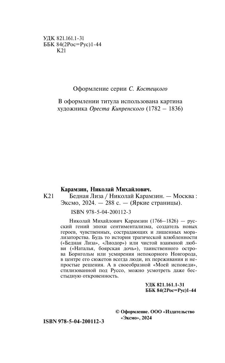 Книга: Бедная Лиза (Карамзин Николай Михайлович); ООО "Издательство "Эксмо", 2024