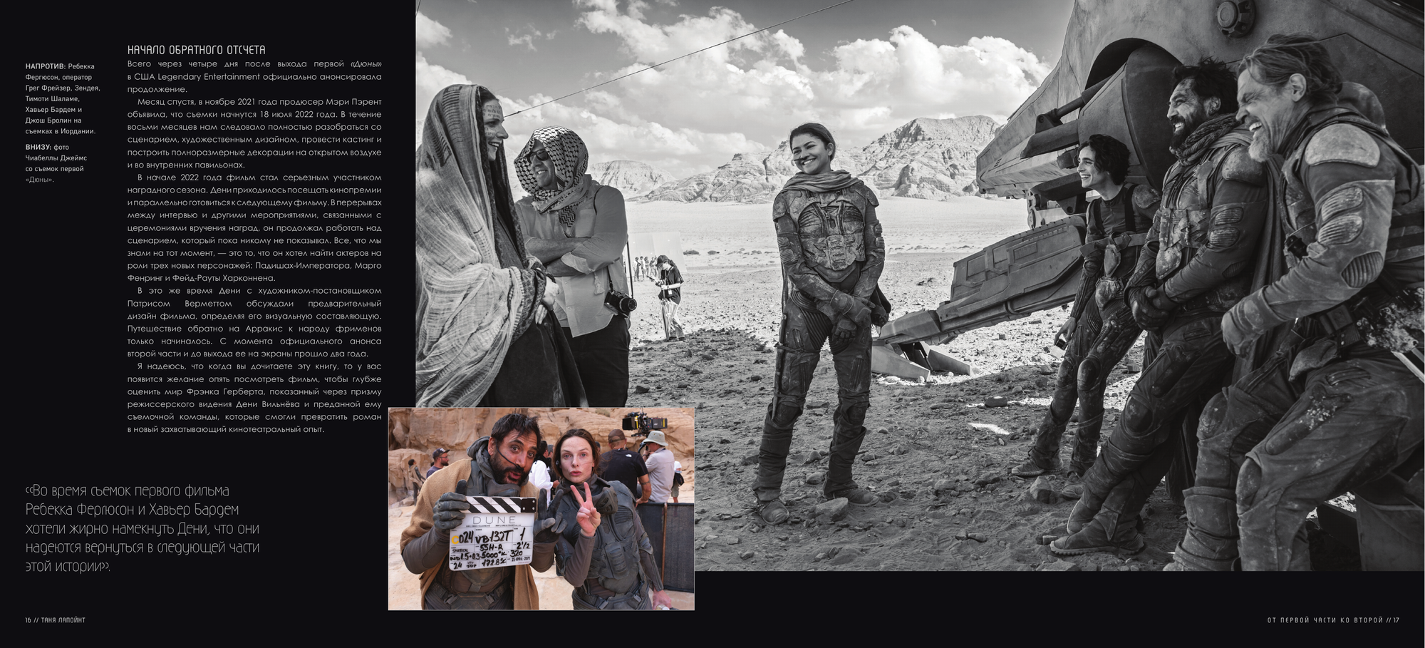 «Дюна» — торжество кинематографа. Фантастические миры Арракиса оживают не только на экранах, но и на страницах этой книги. Жена режиссера, Таня Лапойнт, честно расскажет, чего стоило Дени Вильнёву снять вторую часть. Свежие интервью со съемочной группой и актерами позволят окунуться в атмосферу съемочной площадки и буквально воочию увидеть, как создавался этот масштабный шедевр.