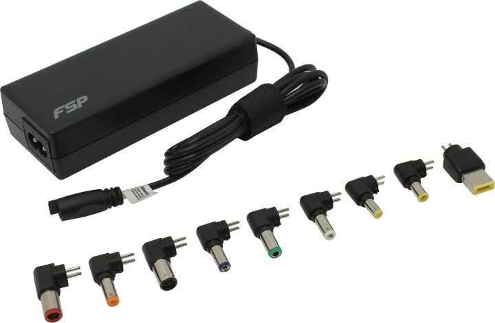 Адаптер питания для ноутбуков FSP NB 90 90W подойдет для большого количества устройств данного типа различных производителей. Реализуется это благодаря большому количеству штекеров-насадок (8 штук), которые входят в комплект устройства, и его стандартным параметрам. Выходная мощность адаптера составляет 90 Ватт, а рабочее выходное напряжение – от 18 до 20 Вольт, что соответствует требованиям большинства современных мощных ноутбуков.
