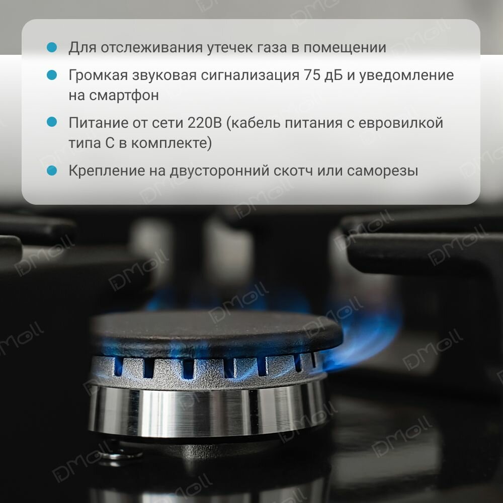 | Комплект поставки | Датчик утечки газа, кабель питания с евровилкой, дюбель x 2 |
