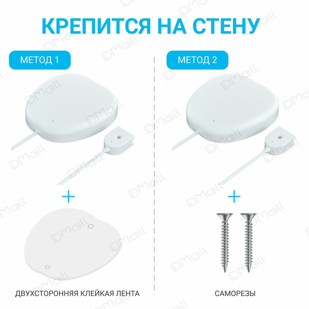 | Комплект поставки | Датчик протечки воды, наклейка 3M, саморезы, руководство пользователя |