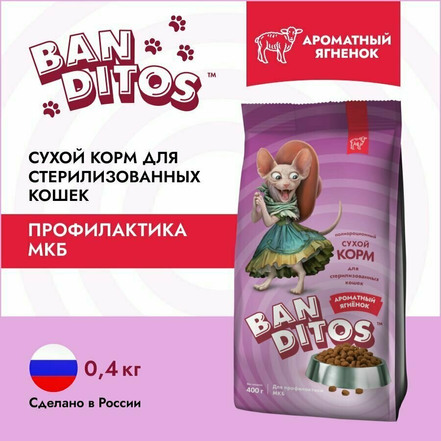 Сухой Сухой корм для стерилизованных кошек и кастрированных котов BANDITOS с ягненком 400 г