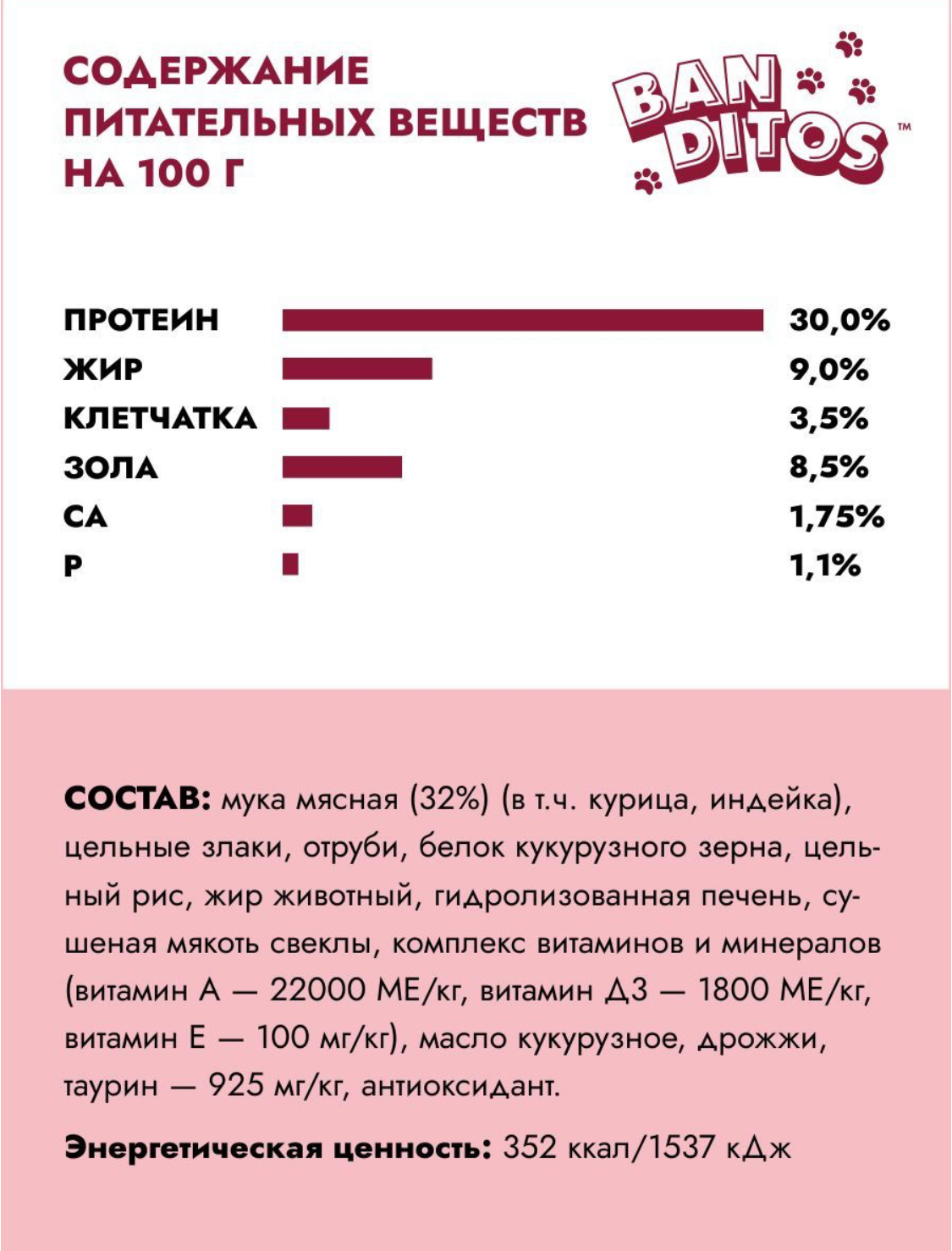 Сухой Сухой корм для взрослых кошек BANDITOS с индейкой 400 г