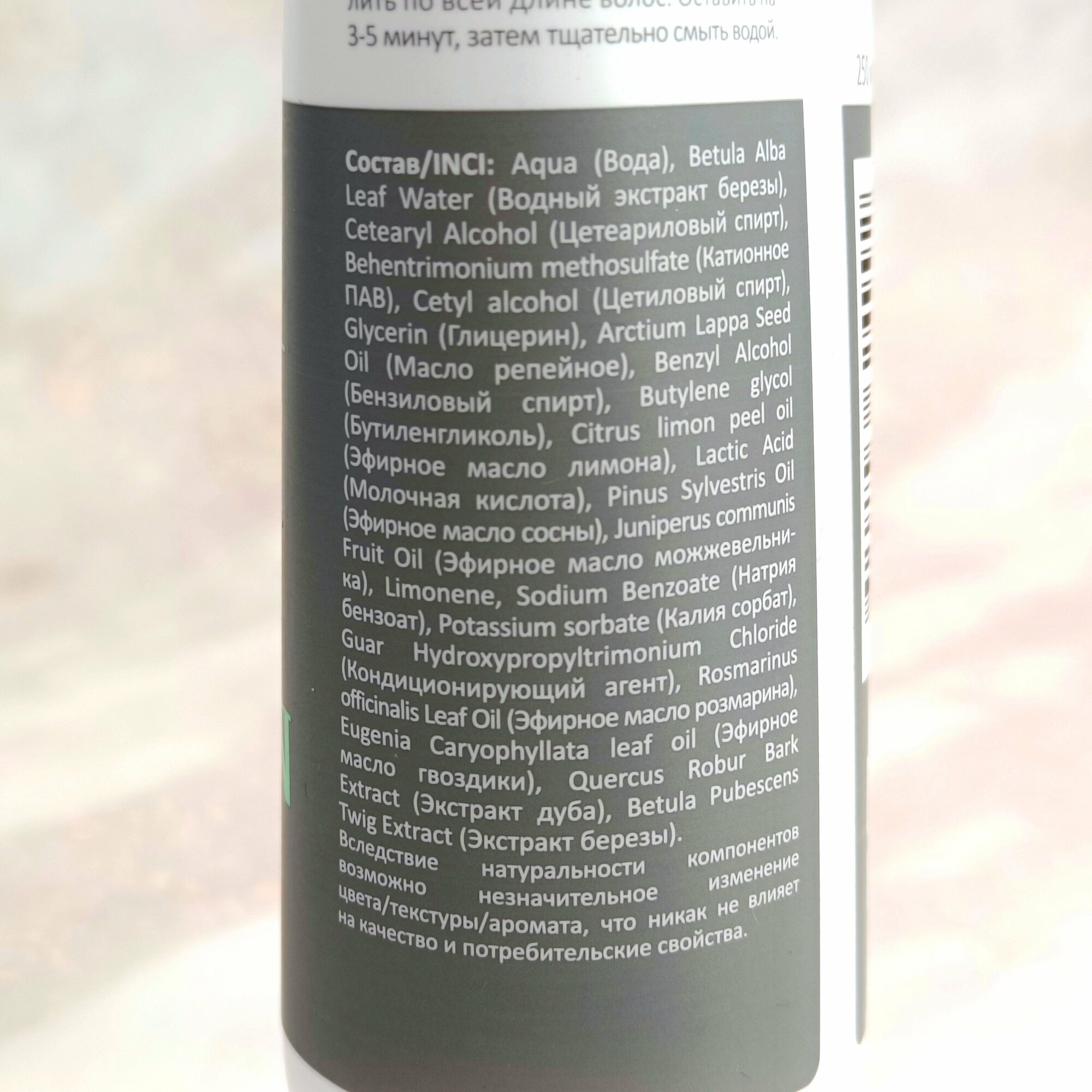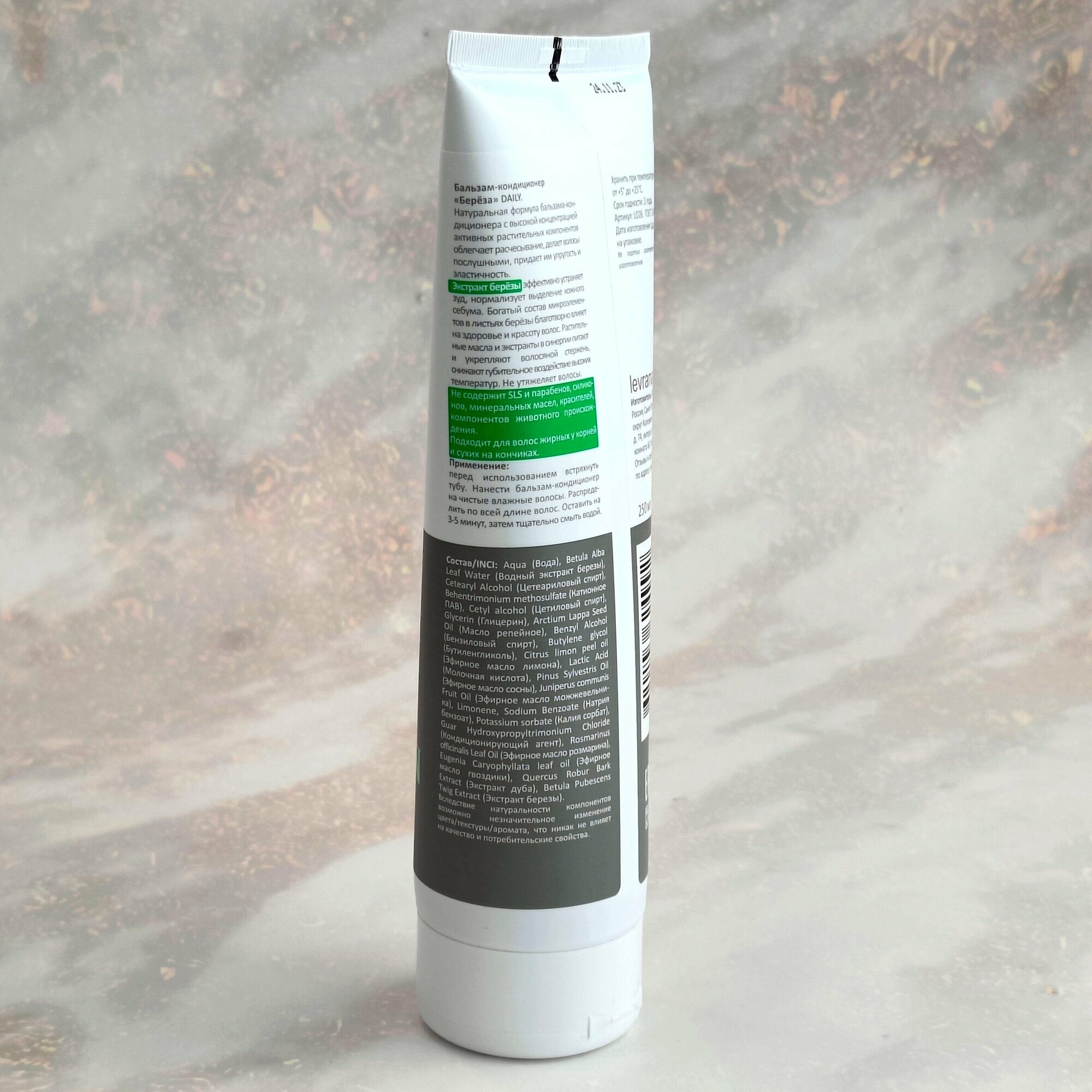 Натуральная формула бальзама-кондиционера с высокой концентрацией активных растительных компонентов облегчает расчесывание, делает волосы послушными, придает им упругость и эластичность. Экстракт березы эффективно устраняет зуд, нормализует выделение кожного себума. Богатый состав микроэлементов в листьях березы благотворно влияет на здоровье и красоту волос. Растительные масла и экстракты в синергии питают и укрепляют волосяной стержень, снижают губительное воздействие высоких температур.