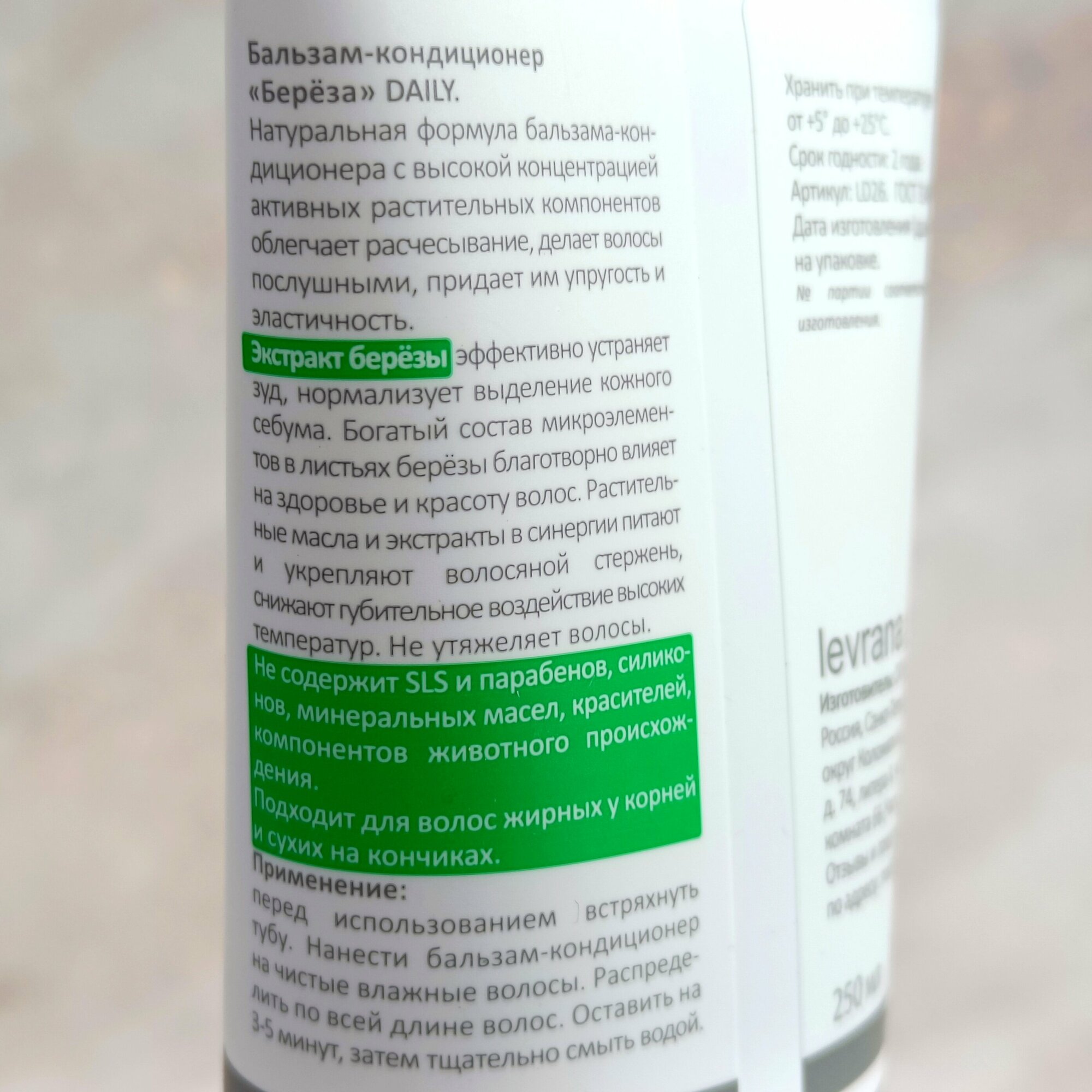 Бальзам-кондиционер для волос Levrana Береза 250 мл