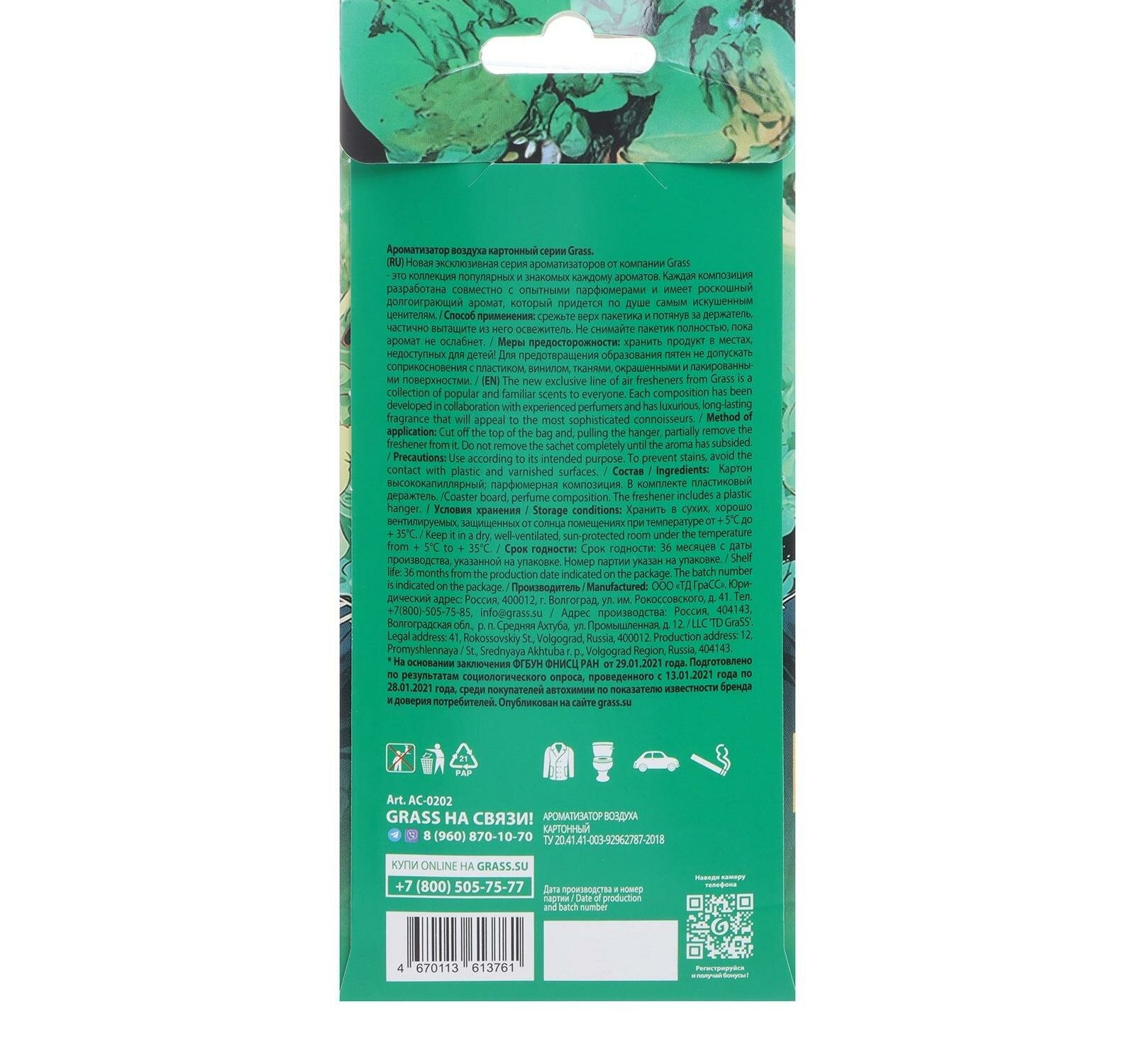 Эксклюзивная серия ароматизаторов от компании GRASS:Коллекция ароматов по мотивам самых известных парфюмерных брендов мира. Каждая композиция разработана и подобрана совместно с профессиональными парфюмерами и имеет роскошный долгоиграющий аромат, который придется по душе самым искушенным ценителям.