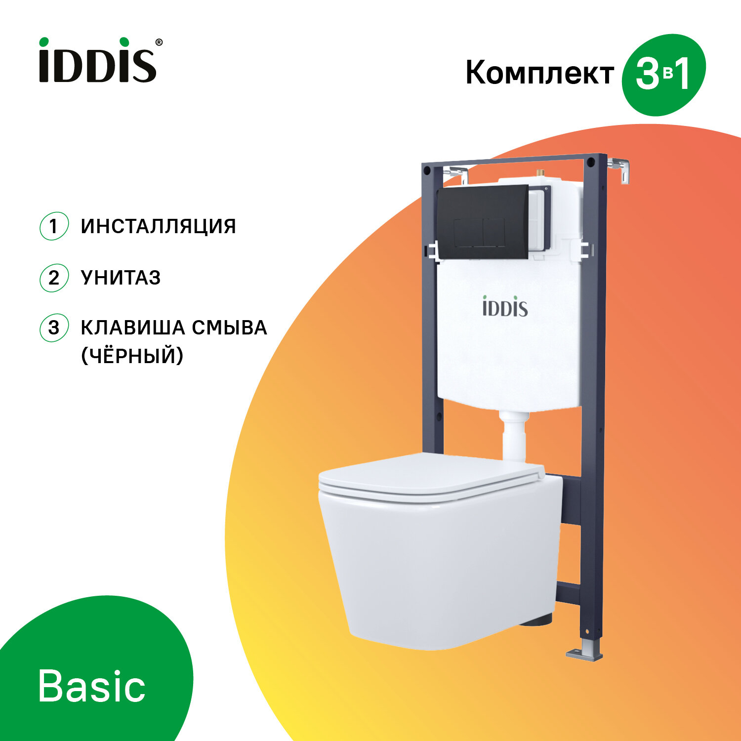 Комплект Iddis BASBI01i73 3 в 1 унитаз Bild BILRDSEi25 + инсталляция Profix PRO0000i32 + кнопка OPH10G0i77 хром глянцевый BASC010i73