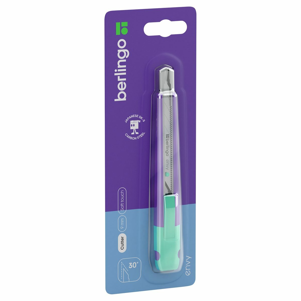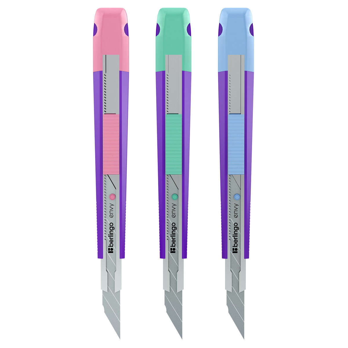 Нож канцелярский Berlingo "Envy" 9 мм auto-lock металл. направл. европодвес (BM4141)
