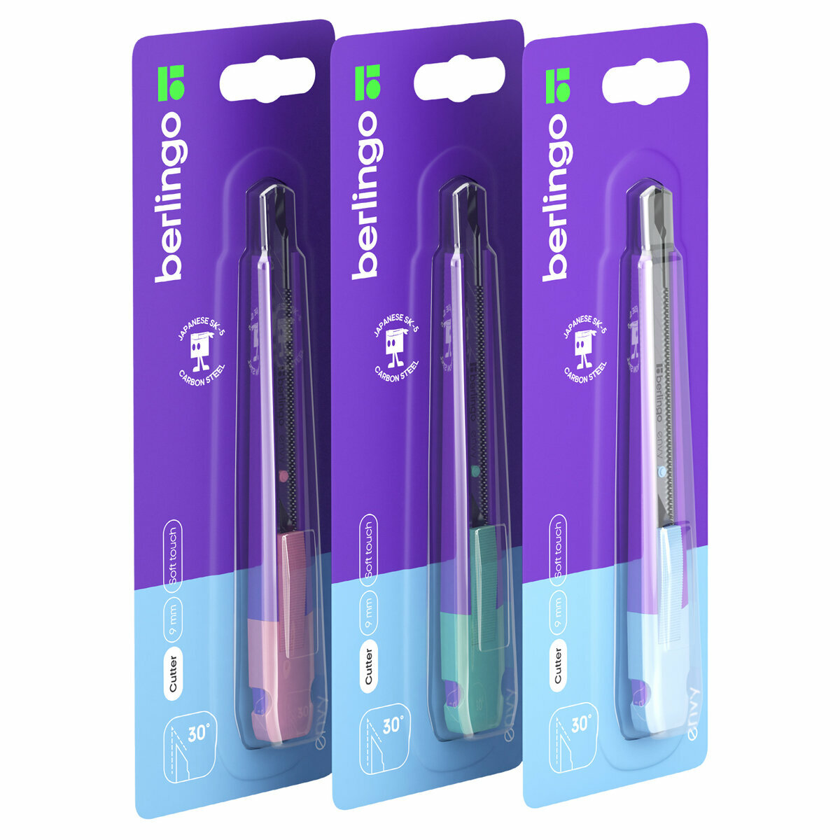 На сегодняшний день товар «Нож канцелярский Berlingo "Envy" 9 мм auto-lock металл. направл. европодвес (BM4141)» можно купить с кешбеком в 1 магазине: Арт-маркет "Красный Карандаш"