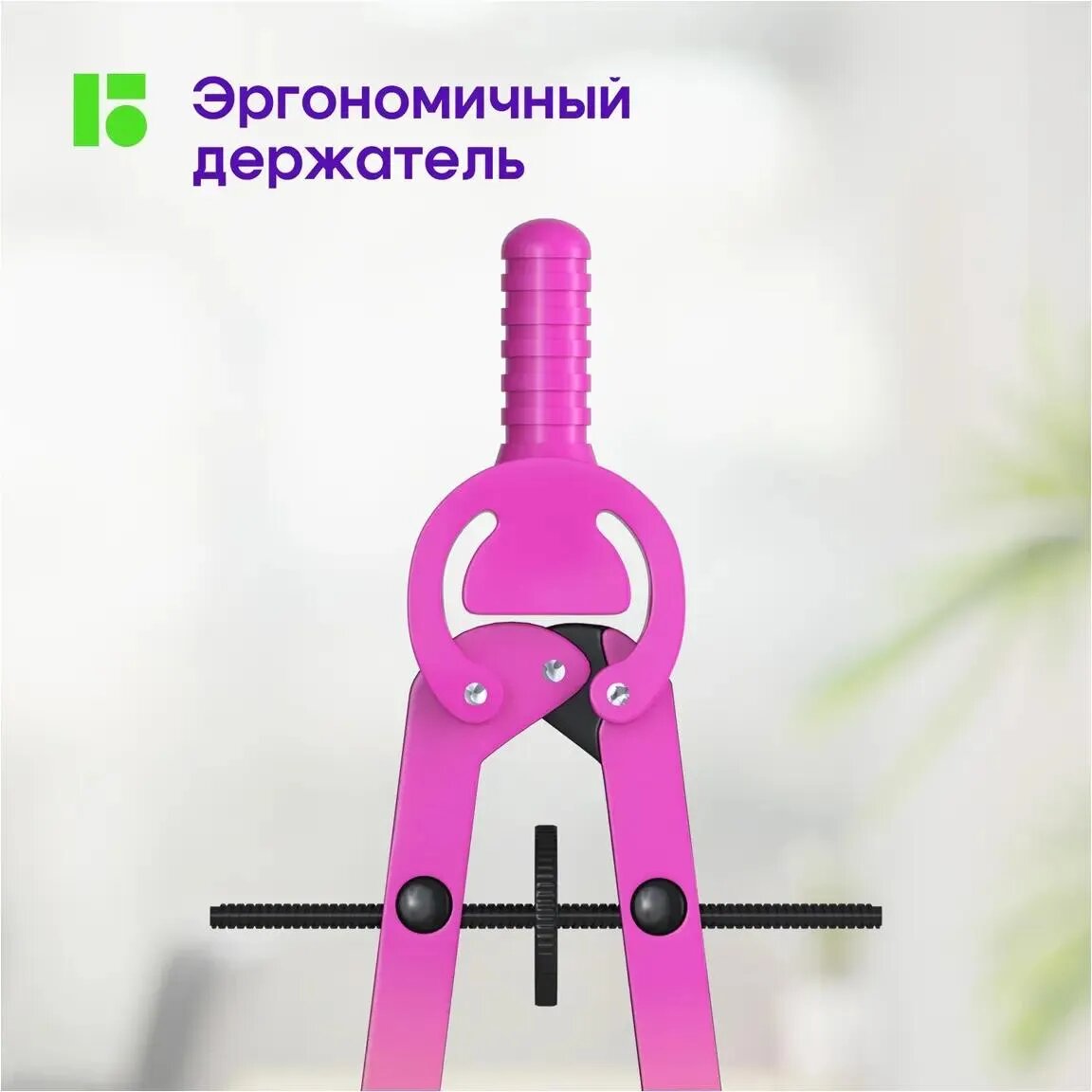 В состав набора входят: циркуль с эргономичной головкой и пенал с запасным грифелем.