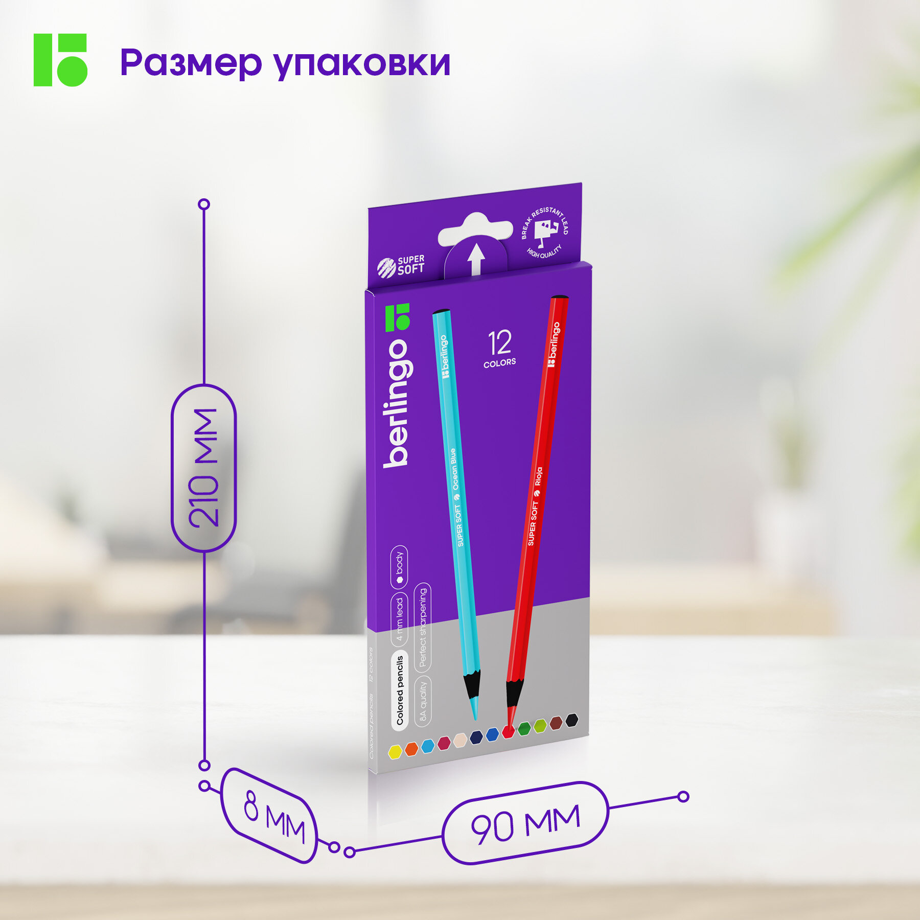 Набор карандашей цветных Berlingo "SuperSoft. Blackwood" 12цв . черное дерево заточен. картон ев SuperSoft Blackwood