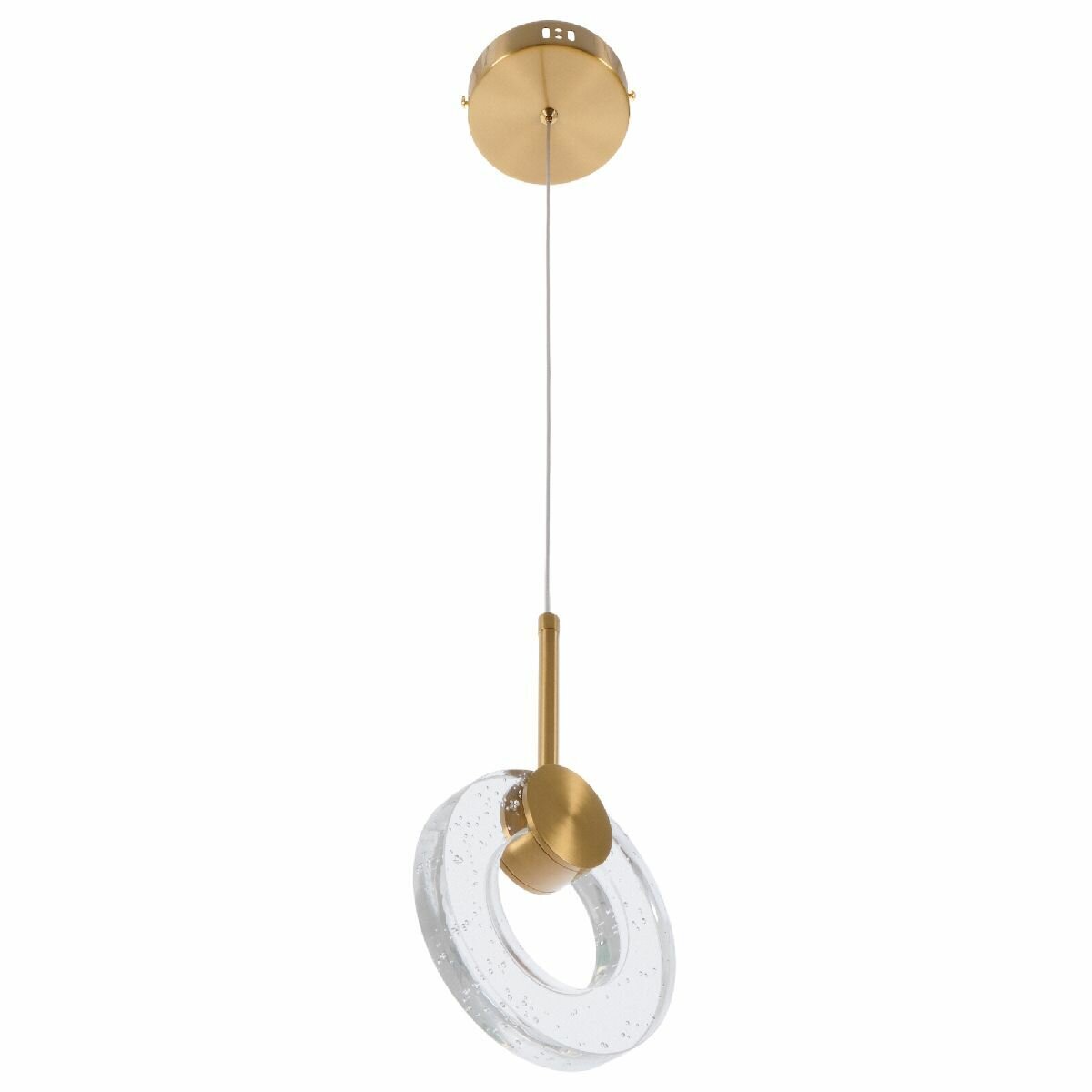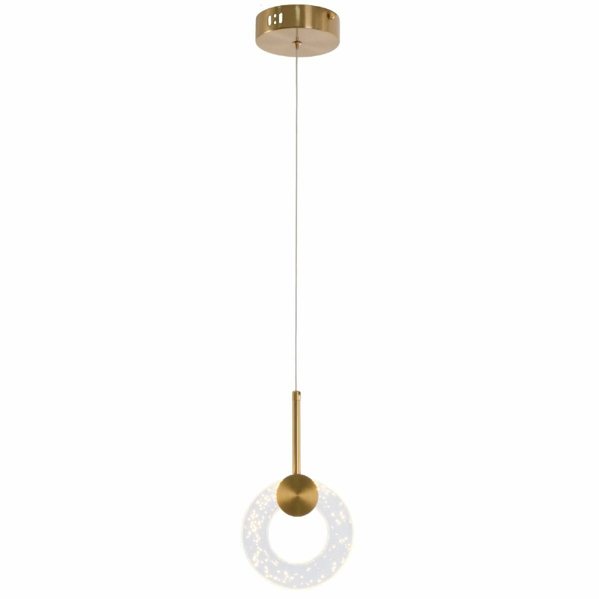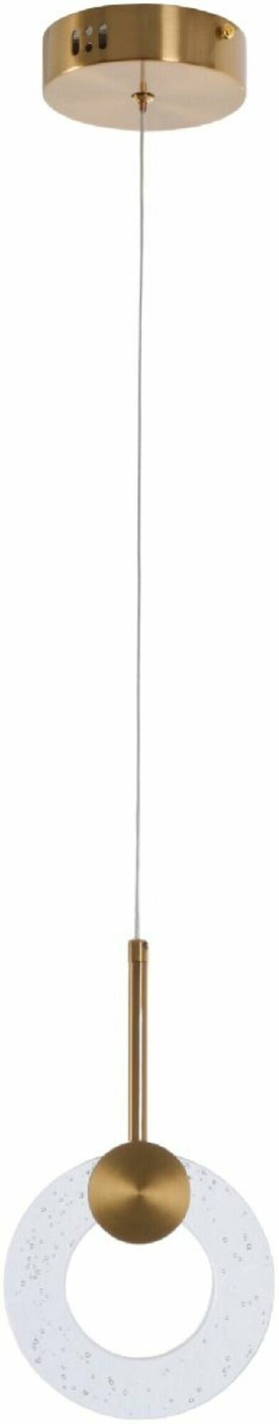 Подвесной светильник MyFar Lora бренда Myfar из России коллекции Lora в стиле Хай-тек. Одна из зон рекомендованных к размещению (необязательно) В кафе и рестораны. Место расположения - На потолок. Материал плафона/абажура - Акрил. Цвет плафона/абажура - Прозрачный. Форма плафона - Кольцо. Направление абажуров/плафонов: Вниз. Количество плафонов/абажуров - 1. Материал арматуры - Металл. Цвет арматуры - Золото. Подходит для натяжных потолков: Да. Тип крепления: Монтажная пластина. Цвет свечения: Теплый белый. Цветовая температура: 3000. Тип подключаемых ламп: Светодиодная цоколя LED. Площадь освещения - 4. Мощность лампы, W: 15. Общая мощность, W: 15. Лампы в комплекте: Да. Напряжение - 220. Степень защиты (IP): 20. Высота, мм - 1200. Ширина, мм - 120. Длина, мм - 150. Длина подвеса, мм - 930