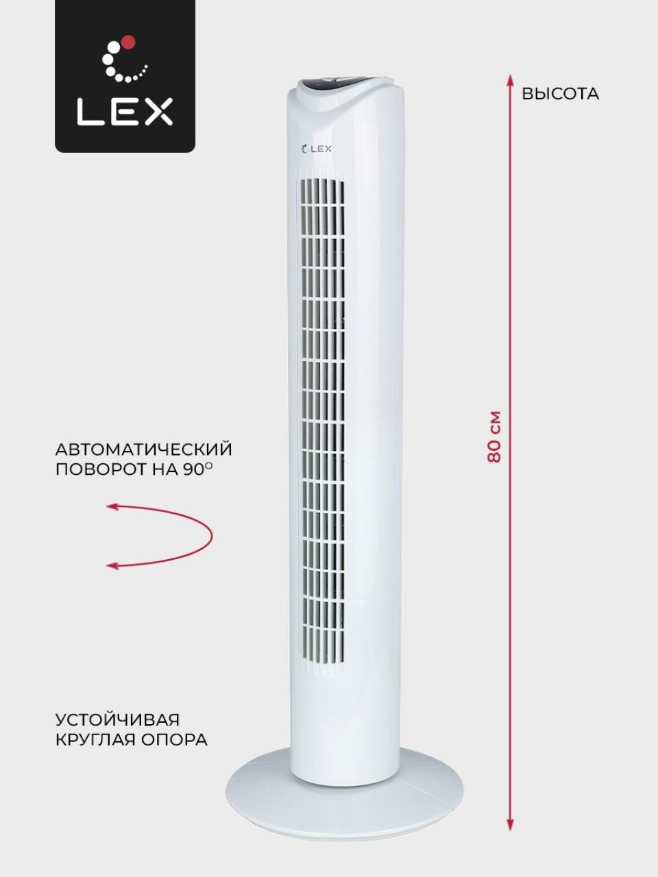 Очаровательная прохлада в каждом уголке вашего дома с компактным вертикальным вентилятором высотой 80 см. Мощный обдув, современный дизайн и 3 скорости делают вентилятор прекрасным спутником дома и в офисе.Создавайте идеальный микроклимат легким нажатием кнопки на панели или удобном пульте управления. Таймер до 7,5 ч и функция энергосбережения позволяют вам наслаждаться свежестью без забот.Оптимальный дизайн вентилятора — это не только высокая мощность, но и элегантность. Стильный и компактный, он легко вписывается в интерьер, добавляя ему современности. Качественная отделка придает модели эстетичность и делает ее неотъемлемой частью вашего пространства.Насладитесь тишиной при максимальной эффективности: плавный поворот вентилятора на 90° обеспечивает равномерное охлаждение воздуха. С удобными светодиодными индикаторами и функцией таймера настройте вентилятор по своему желанию, а он создаст для вас идеальный баланс комфорта и эффективности.
