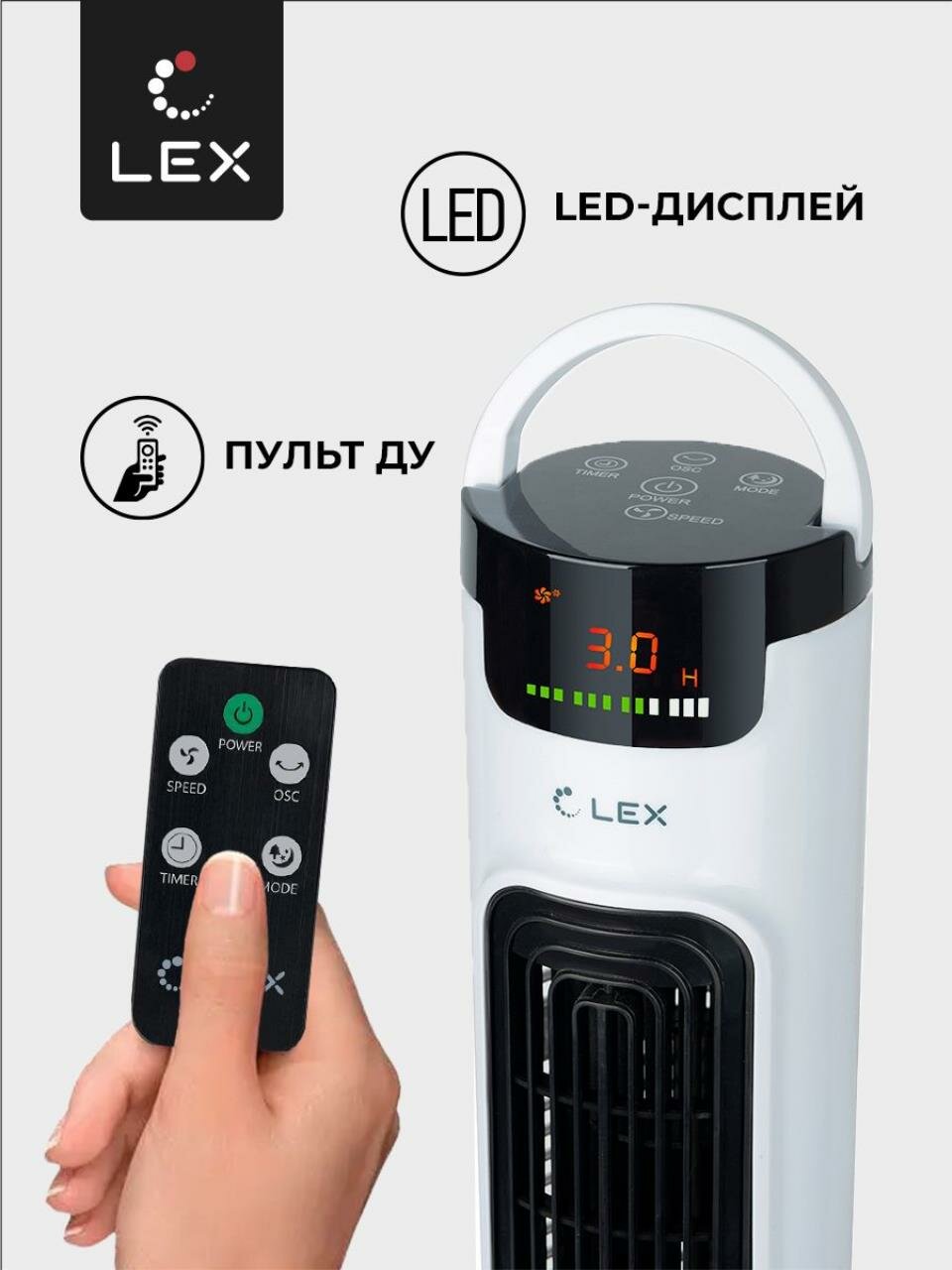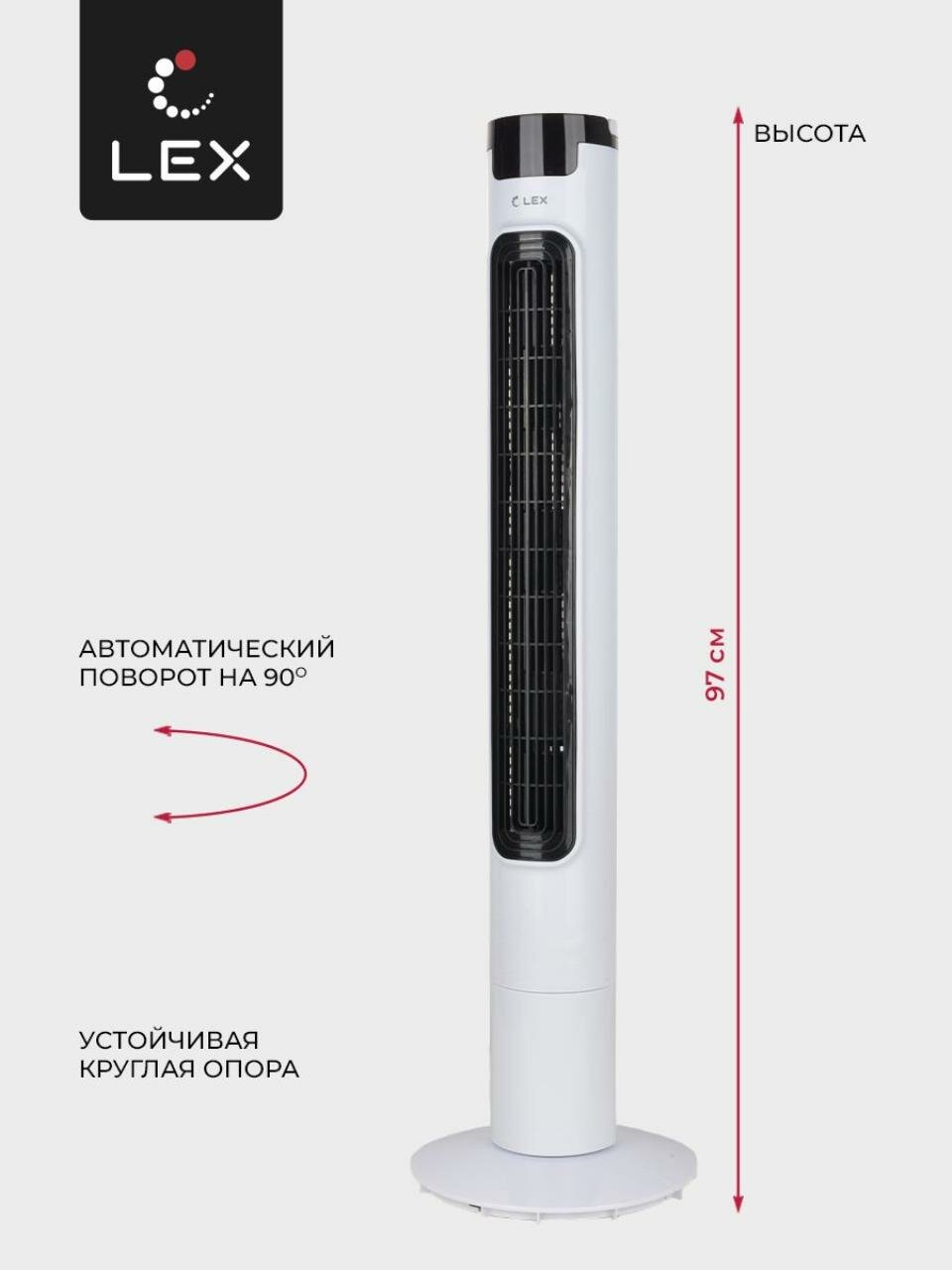 Напольный вентилятор колонного типа с электронным управлением, пультом ДУ и мотором мощностью 50 Вт создаст приятный поток прохладного воздуха в летнюю жару. Низкий уровень шума и 3 скорости работы обеспечивают скорейшее достижение комфорта. Вентилятор может работать как в фиксированном положении, так и с автоповоротом корпуса на 90 градусов, что существенно увеличивает площадь обдува. Постоянная активная циркуляция воздуха дома или в офисе дарит ощущение свежести, способствует лучшему тонусу и отличному настроению в течение всего дня, а ночью — крепкому сну и быстрому восстановлению сил. Надежная конструкция вентилятора и понятная панель управления обеспечат долгий срок службы. Модель в эстетичном корпусе органично впишется в любой интерьер.