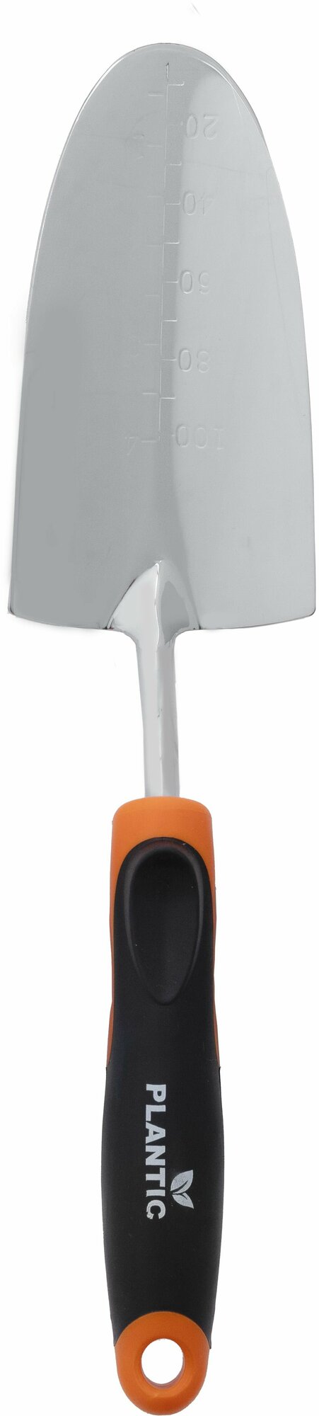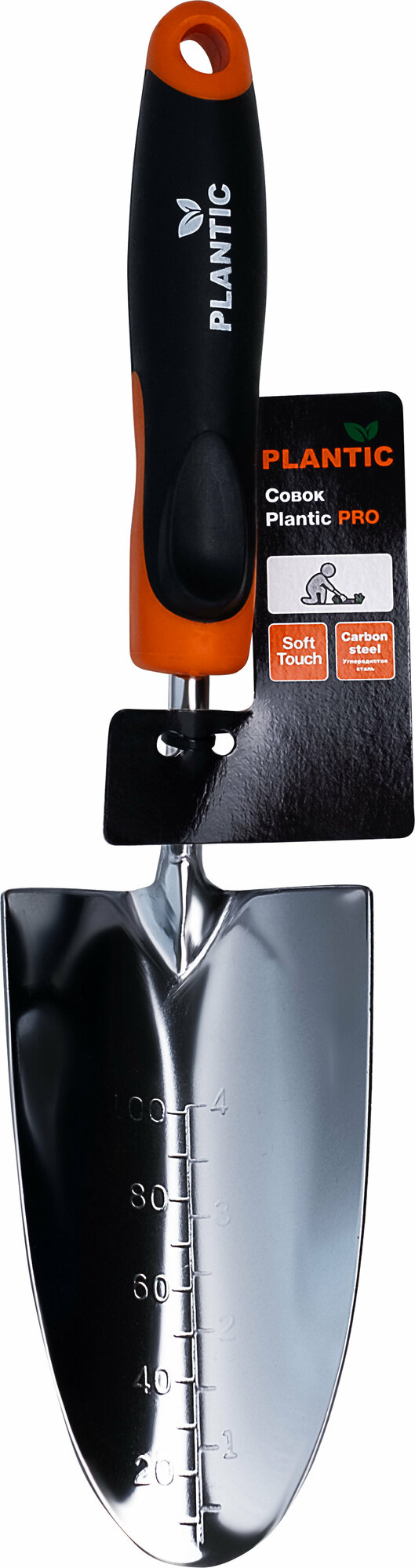Совок Plantic Pro - садовый инструмент, который подходит для посадки растений, культивации земли и уходу за небольшими кустарниками. Он изготовлен из прочной хромированной углеродистой стали, гарантирующей долгий срок службы. Эргономичная рукоятка с покрытием из нескользящего материла Soft Touch обеспечивает надежный и комфортный захват ладонью. Предусмотрена петелька для удобного хранения. Благодаря дизайну с использованием контрастных цветов вы не потеряете инструмент и легко отыщите его в траве.