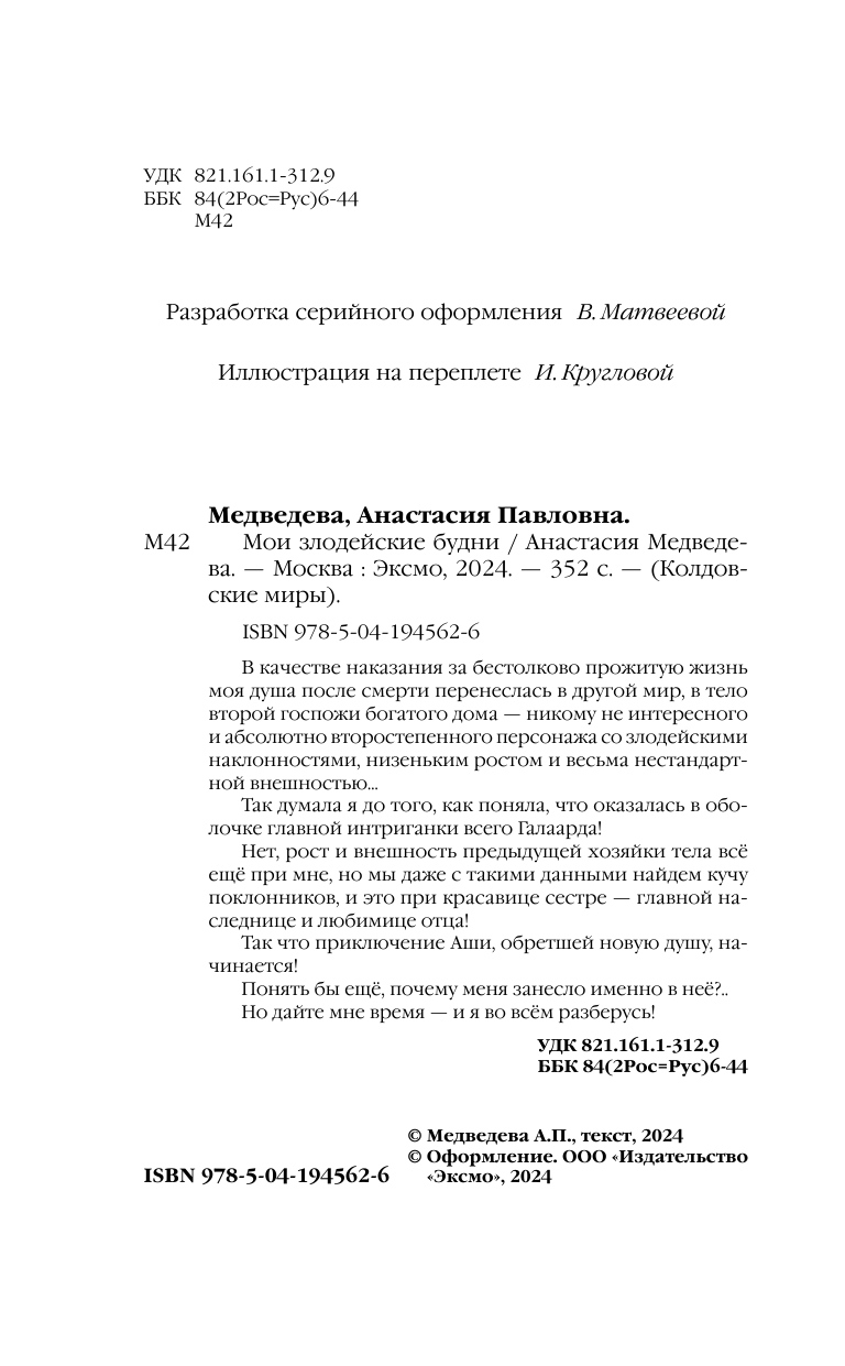 Книга: Мои злодейские будни (Медведева Анастасия Павловна); ООО "Издательство "Эксмо", 2024