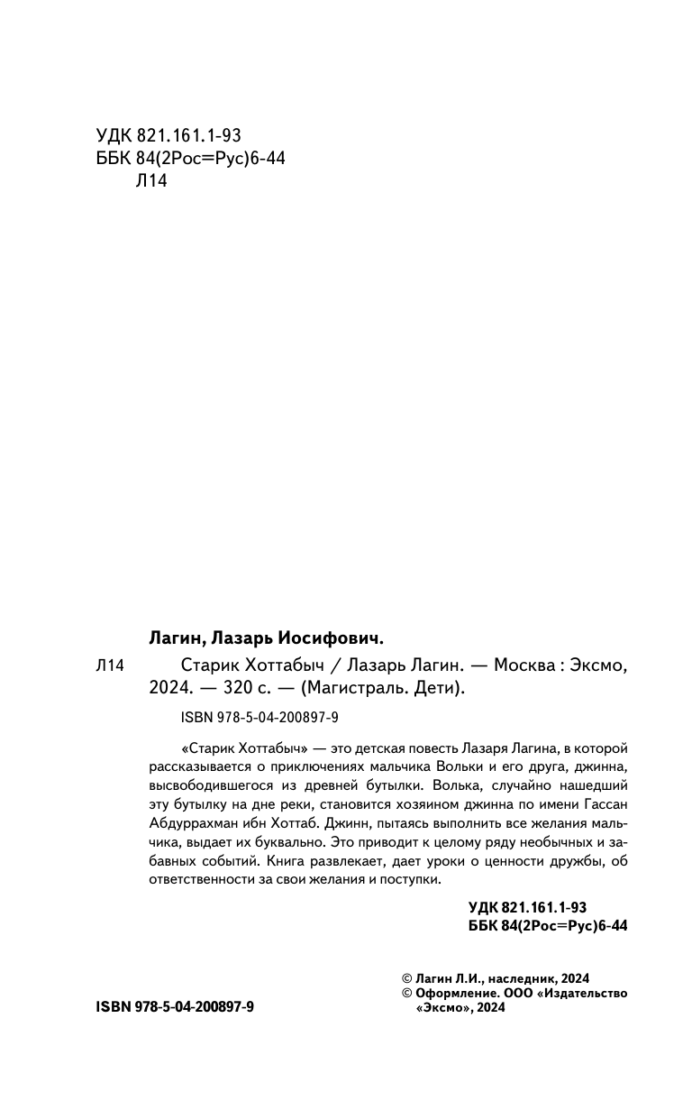 Книга: Старик Хоттабыч (Лагин Лазарь Иосифович); ООО "Издательство "Эксмо", 2024