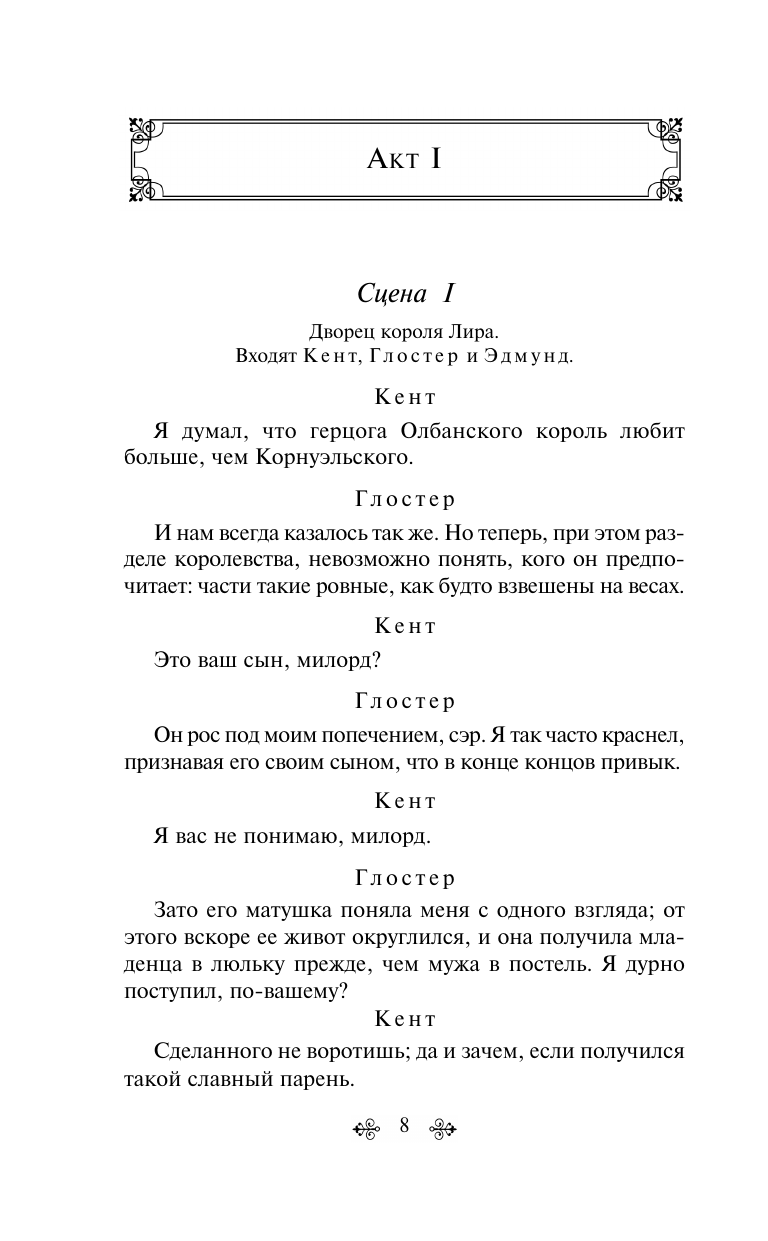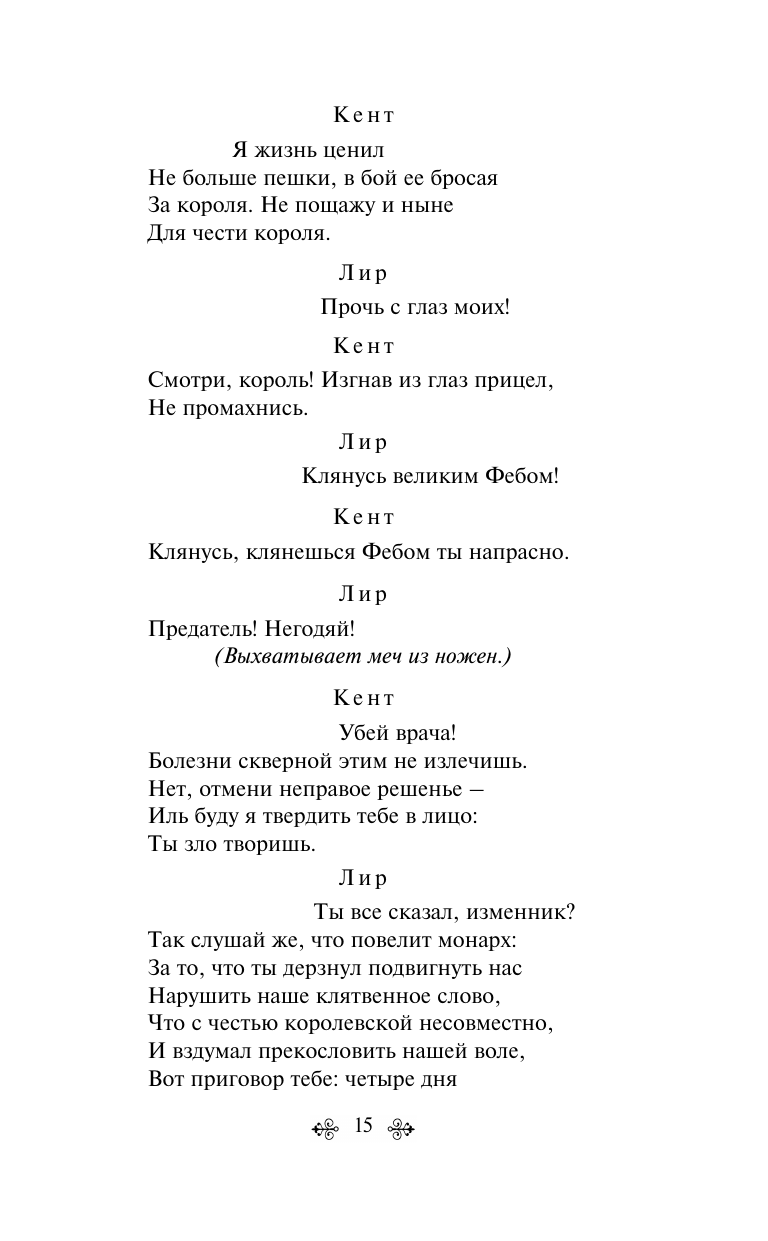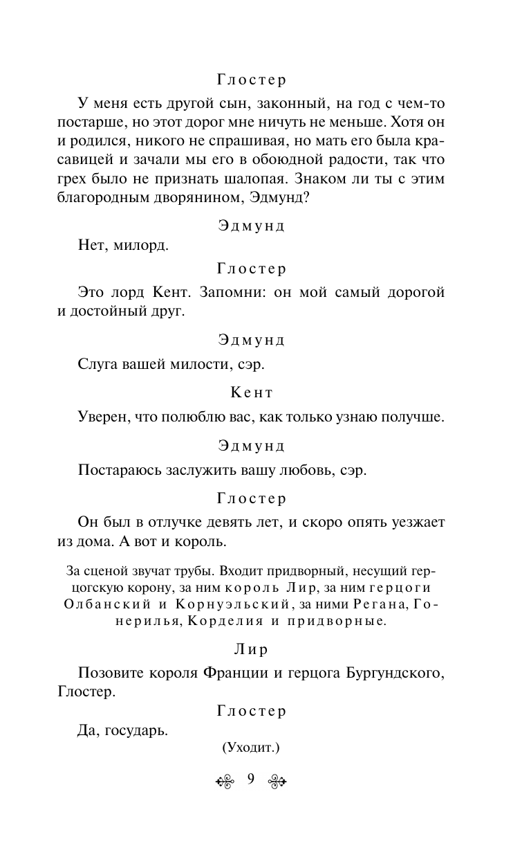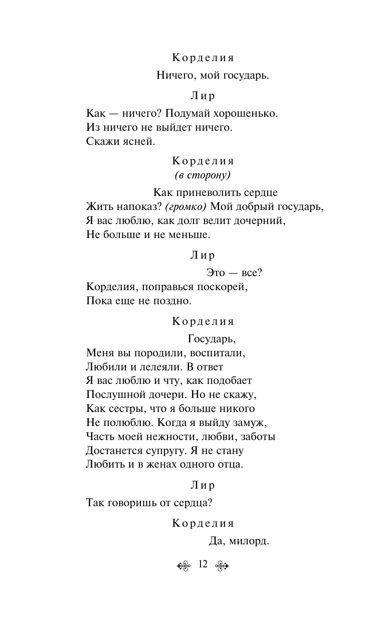 Проходят столетия, но пьесы великого английского драматурга Уильяма Шекспира продолжают привлекать внимание читателей и зрителей. Секрет бессмертия его произведений не только в образности языка и яркости персонажей. Стержнем шекспировских пьес являются сильные человеческие чувства и страсти. Движимые любовью, жаждой мести, тщеславием или завистью, герои Шекспира не оставляют нас равнодушными, потому что все эти чувства и страсти - вечны. И еще одна из главных тем - источник любой страсти и любого порока - своеволие и необоримая потребность "взять свое". Страшный девиз "каждому свое" начертан над входом в созданный Шекспиром ад больших и малых, но всегда смертоносных страстей. "Король Лир", "Буря" принадлежат позднему периоду творчества Уильяма Шекспира; в обеих пьесах главный герой - стареющий властитель, а тема - расставание с властью. Трагедию "Король Лир" многие называют величайшим из всех творений Шекспира. Блок писал: "Трагедии Ромео, Отелло, даже Макбета и Гамлета могут показаться детскими рядом с этой. Здесь простейшим и всем понятным языком говорится о самом тайном, о чем и говорить страшно. ". К самым успешным и популярным на сцене пьесам Шекспира относят и "Бурю"; ее жанр обычно определяют как романтическая сказка, хотя фактически это трагикомедия. Это - последняя пьеса Шекспира, написанная без соавторов, его прощание с театром. "Макбет" тоже о власти, правда, продлившейся не долго. Три загадочных пророчества сбываются, Макбет захватывает трон Шотландии. Это одна из самых мрачных и жестоких трагедий Шекспира.