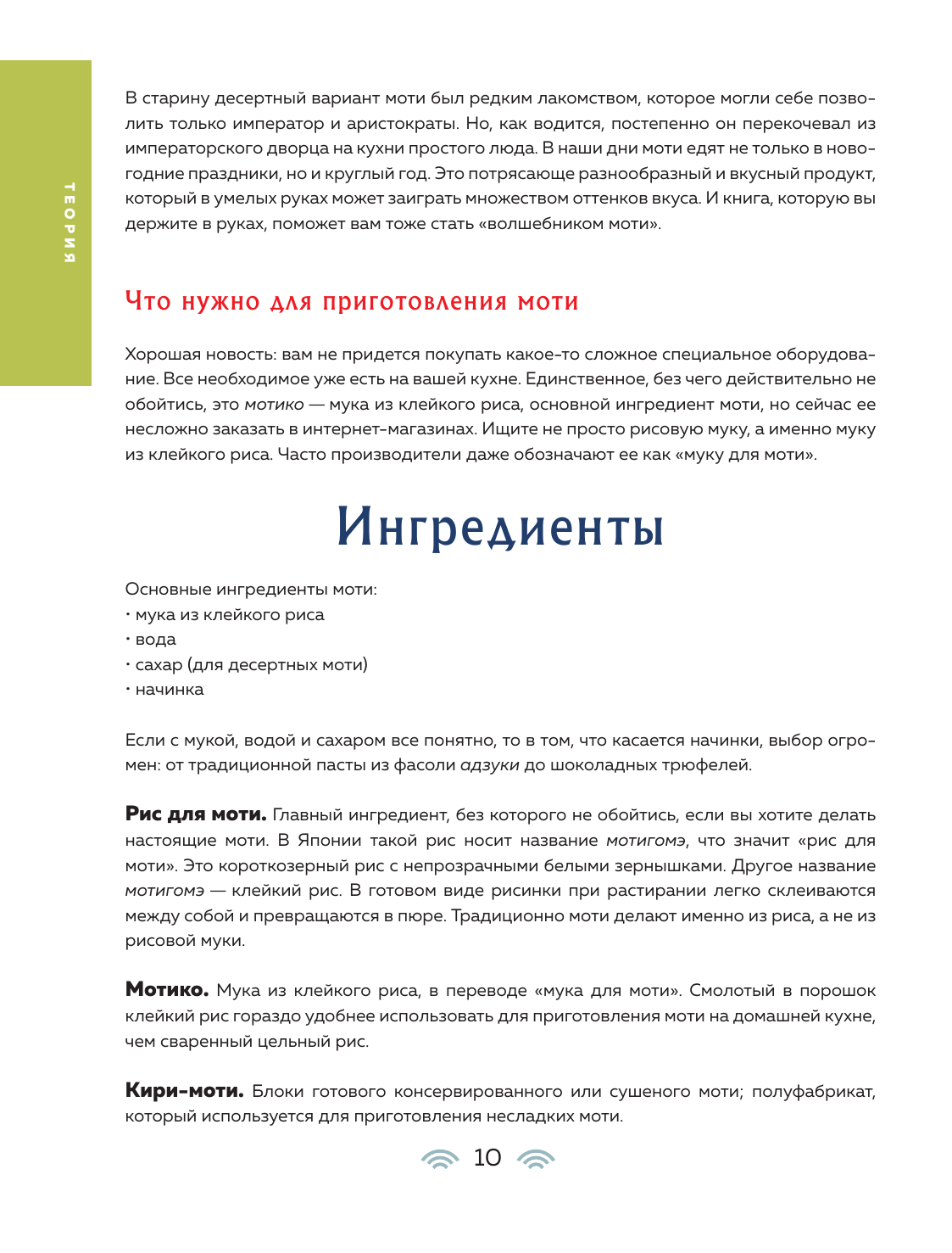 Встречайте легендарный воздушный десерт из Японии! Многие думают, что готовить моти дома нереально, но спешим вас обрадовать: на домашней кухне моти получаются такими же идеальными и бесподобными, как и на кондитерской фабрике! В этой книге вы узнаете, что для моти нужно не так уж и много продуктов и инвентаря, сакральное значение этого десерта для японцев, и найдете подробные инструкции по приготовлению и сборки. Вас ждут более 50 рецептов разнообразных видов теста и начинок для моти, удивительных дизайнов, необычные структур и сочетаний, а также несладких блюд и блюд на основе моти. Самый трендовый десерт теперь и на вашей кухне!