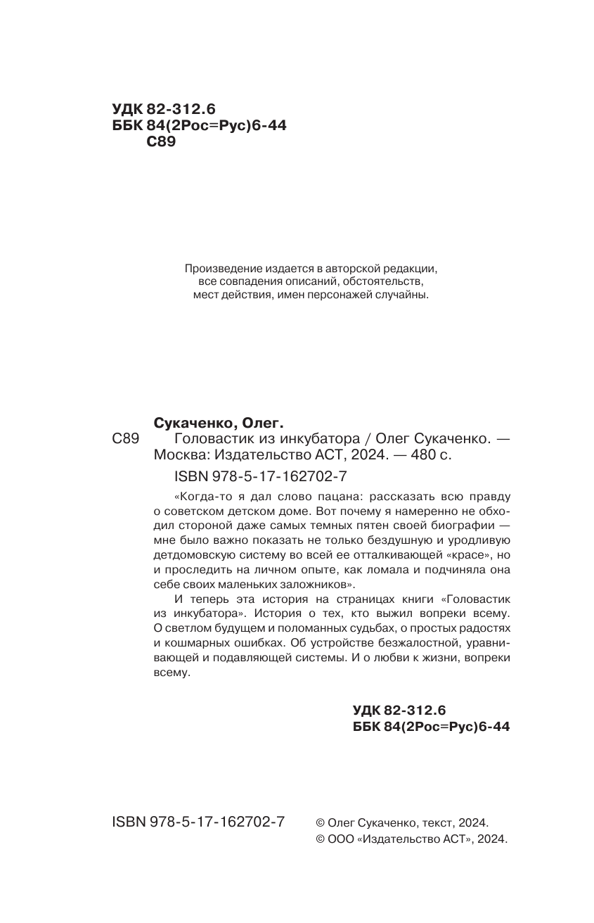 Головастик из инкубатора. Когда-то я дал слово пацана: рассказать всю правду о детском доме (Олег Андреевич Сукаченко); АСТ, 2024