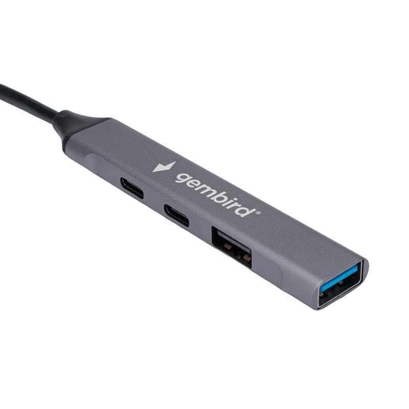 Разветвитель USB 3.0 Gembird 4 порта: 2хType-C 1хUSB 3.0 1хUSB 2.0 алюминиевый корпус серый кабель Type-C+USB UHB-C444