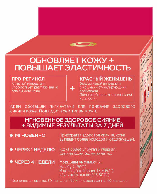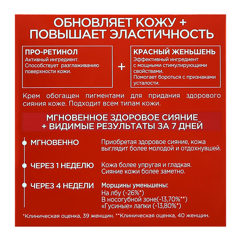 1. Утром используйте крем Revitalift с красным женьшенем для обновления кожи, повышения эластичности и пробуждения сияния кожи.