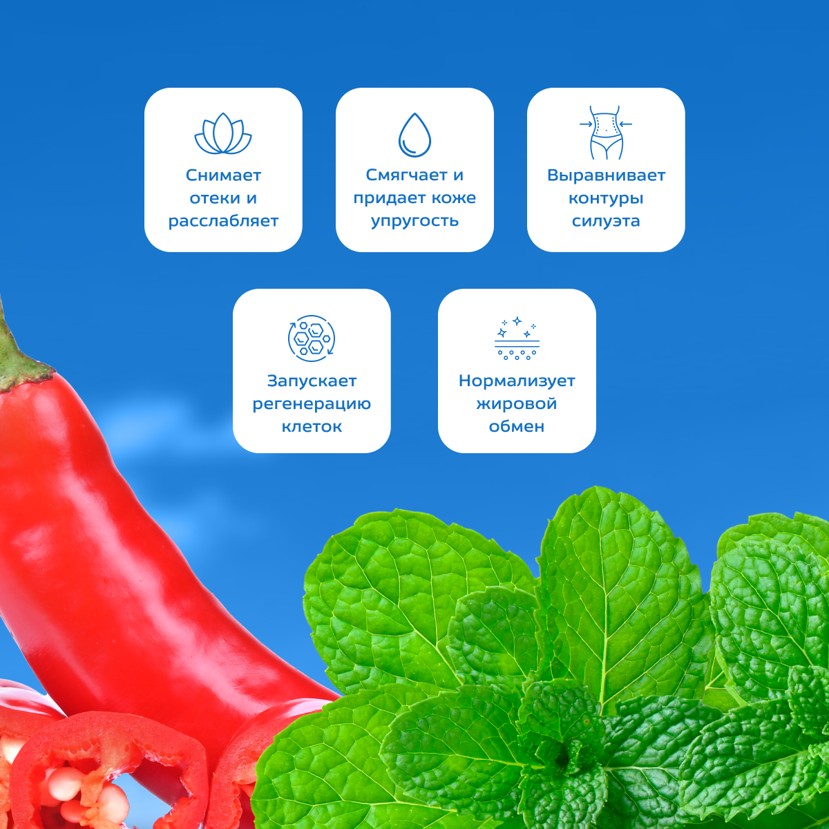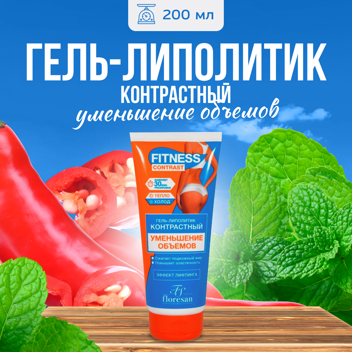 Интенсивный антицеллюлитный гель-липолитик на основе разогревающее-охлаждающего эффекта стимулирует расщепление жиров в подкожном слое и препятствует дальнейшему появлению жировых отложений в проблемных участках тела. Сочетание ментола и экстракта перца создает попеременное ощущение холода и тепла, тем самым стимулируя подкожный обмен веществ и ускоряя лимфодренажные процессы. Гель обладает глубоким увлажняющим действием, тонизирует и подтягивает кожу, восстанавливает ее эластичность, восполняет водно-солевой баланс в тканях, уменьшает отечность. При регулярном применении существенно уменьшается эффект апельсиновой корки, кожа становится гладкой, эластичной и подтянутой