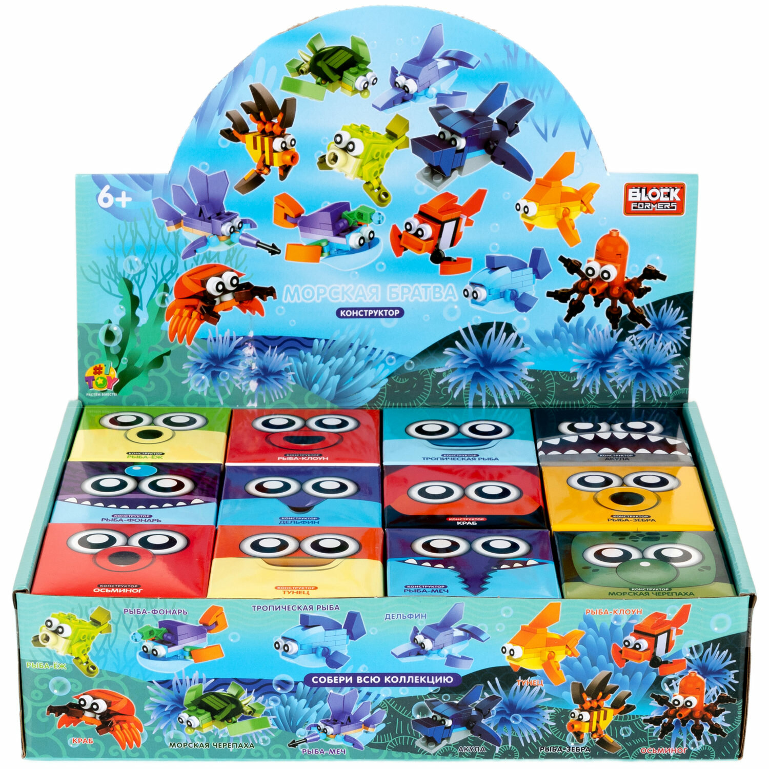Развивающий 3D-конструктор Blockformers "Морская братва" для маленьких любителей морских приключений! Конструктор имеет красочный дизайн, который не оставит равнодушными любителей сборки конструкторов! В серии 12 видов конструкторов: рыба-ёж, рыба-фонарь, тропическая рыба, дельфин, тунец, рыба-клоун, краб, морская черепаха, рыба-меч, акула, рыба-зебра, осьминог. Можно собрать все виды, чтобы на полочке красовалась целая морская коллекция. Собирая конструктор, ребенок развивает кругозор, внимание, креативное и пространственное мышление, усидчивость, а также мелкую моторику. Конструктор содержит от 19 до 31 деталей в зависимости от вида. Конструктор предназначен для детей от 6-ти лет. Товар представлен в ассортименте,без возможности выбора.