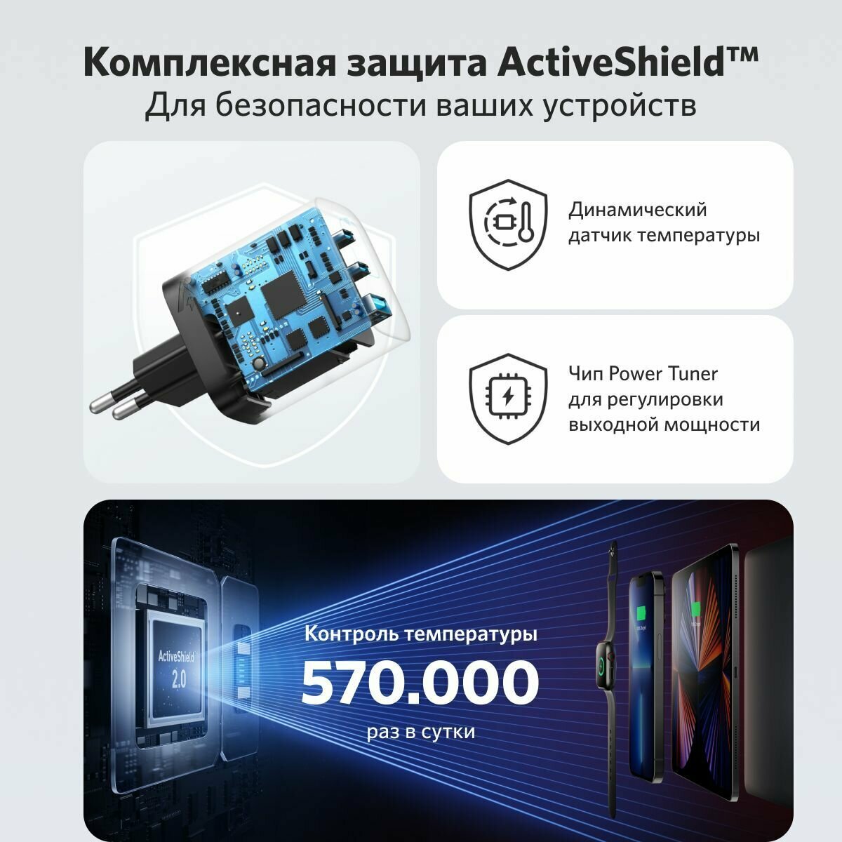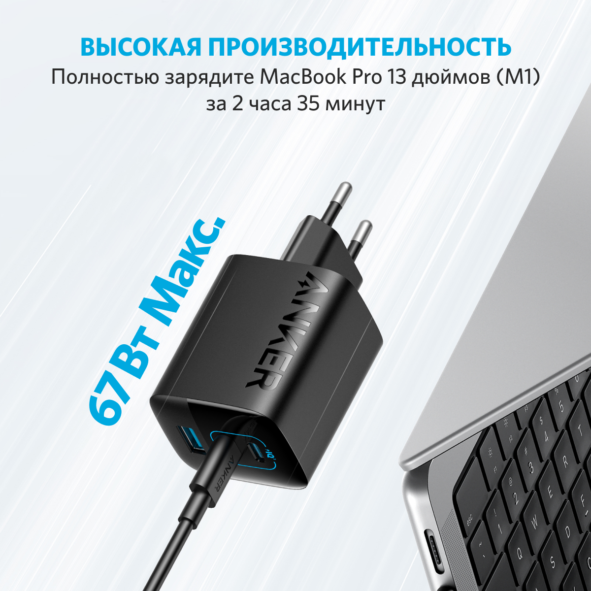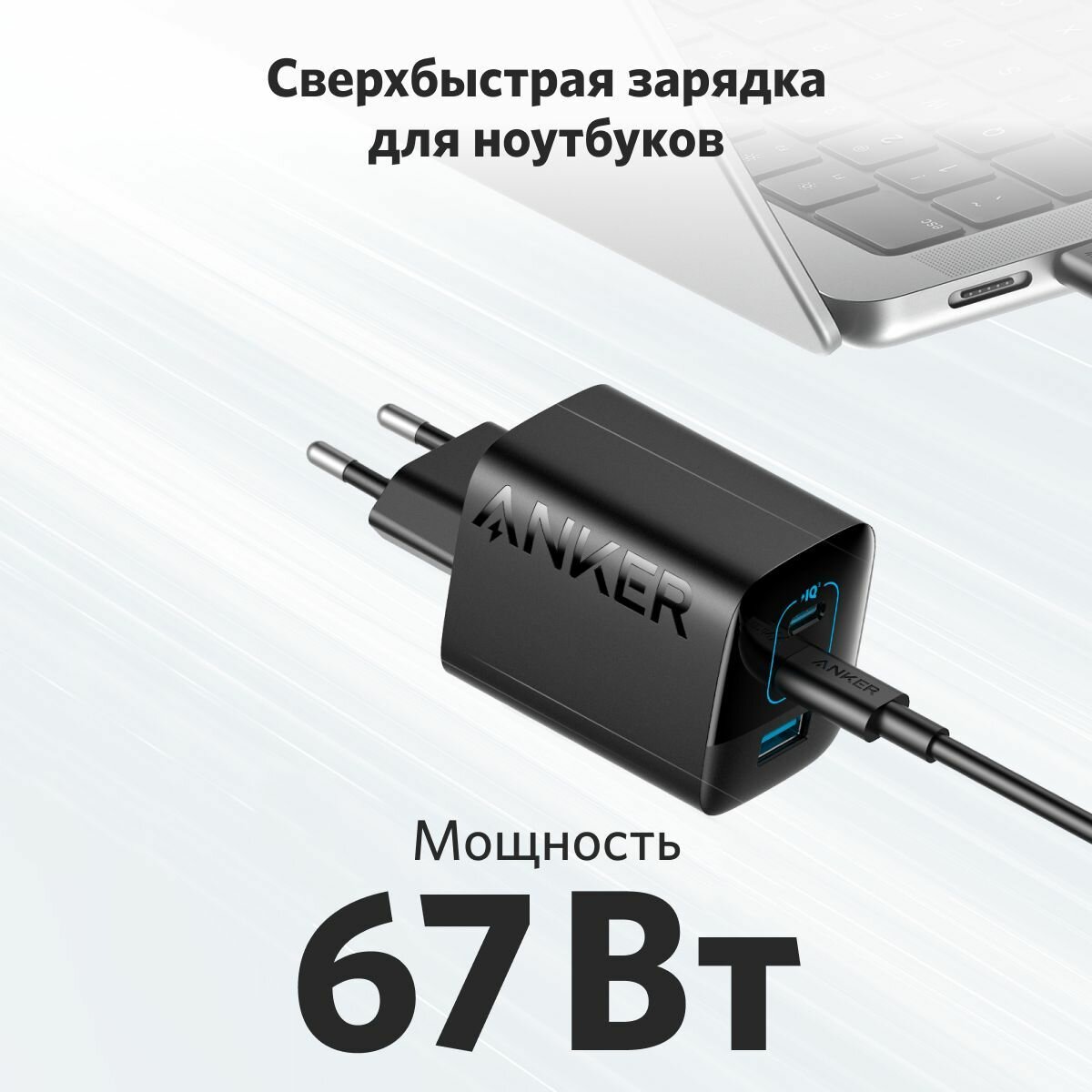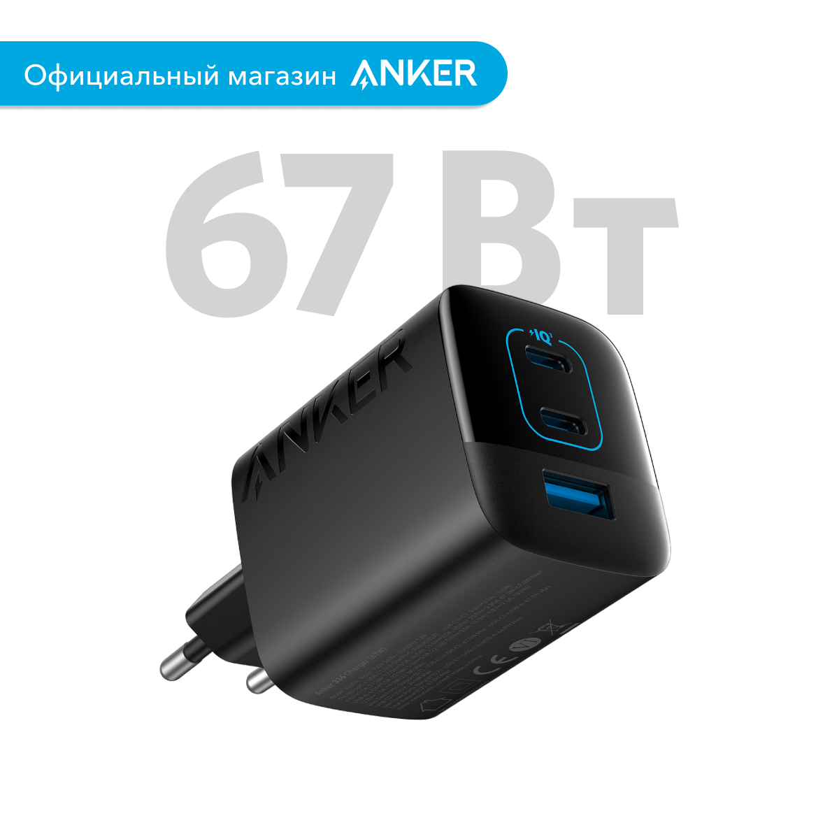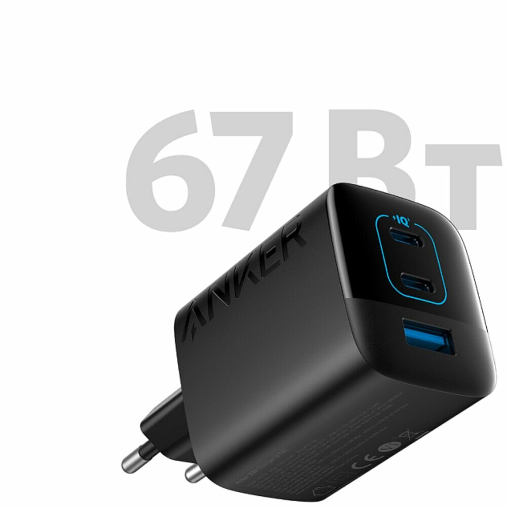 Сетевое зарядное устройство Anker 336 2xUSB-C+USB-A, GaN, 67 Вт черный