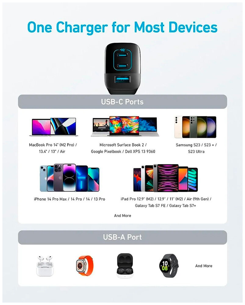 | Разъем на блоке з/у | USB-A x 1, USB-C x 2 |