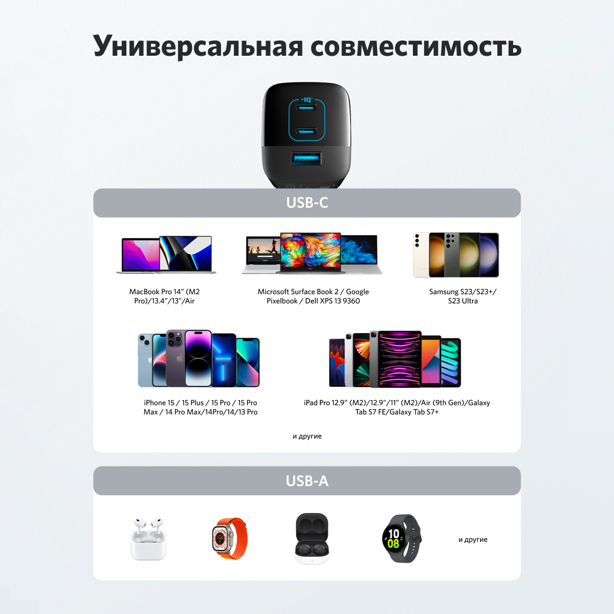 Модель: 336 2xUSB-C+USB-A, GaN, 67 Вт черный