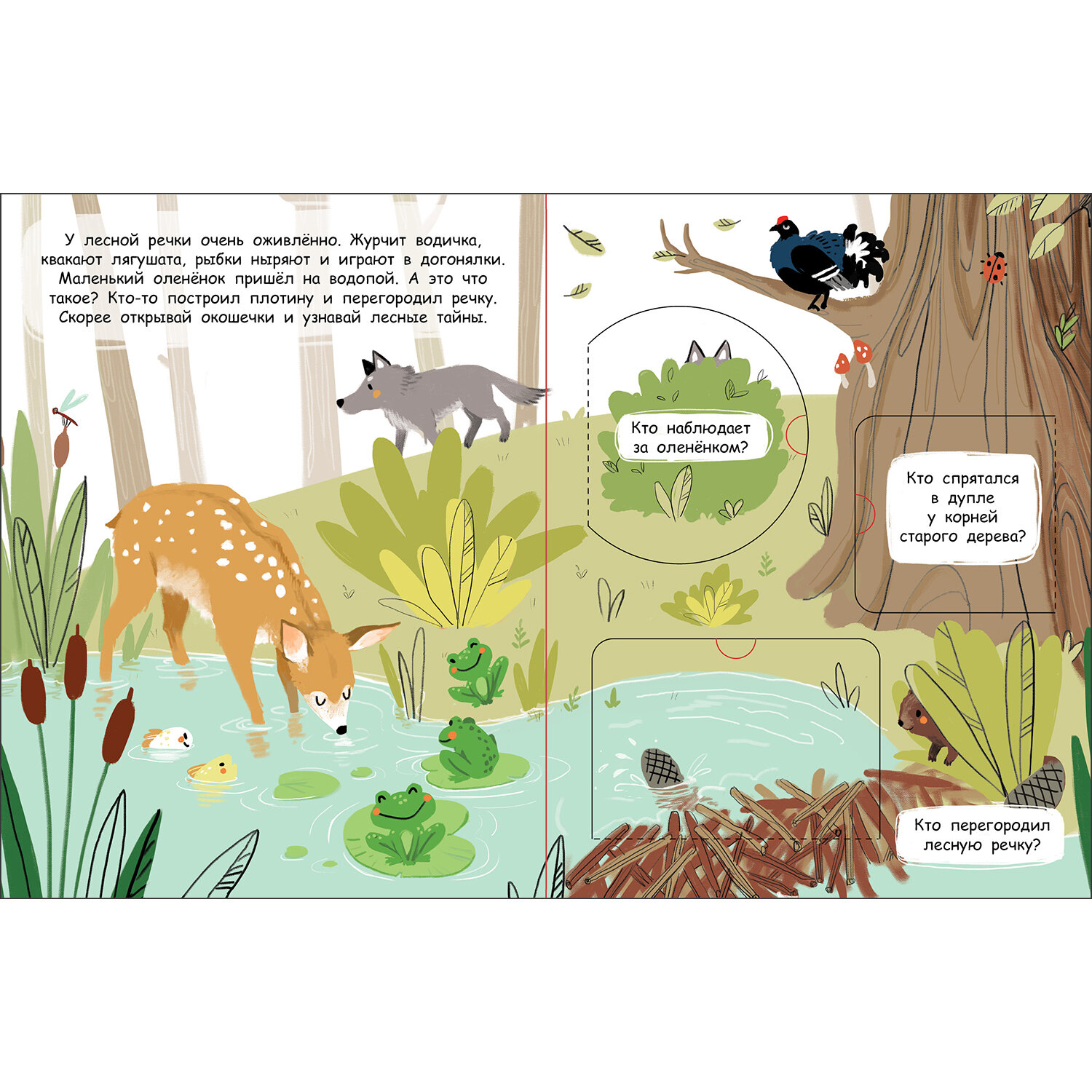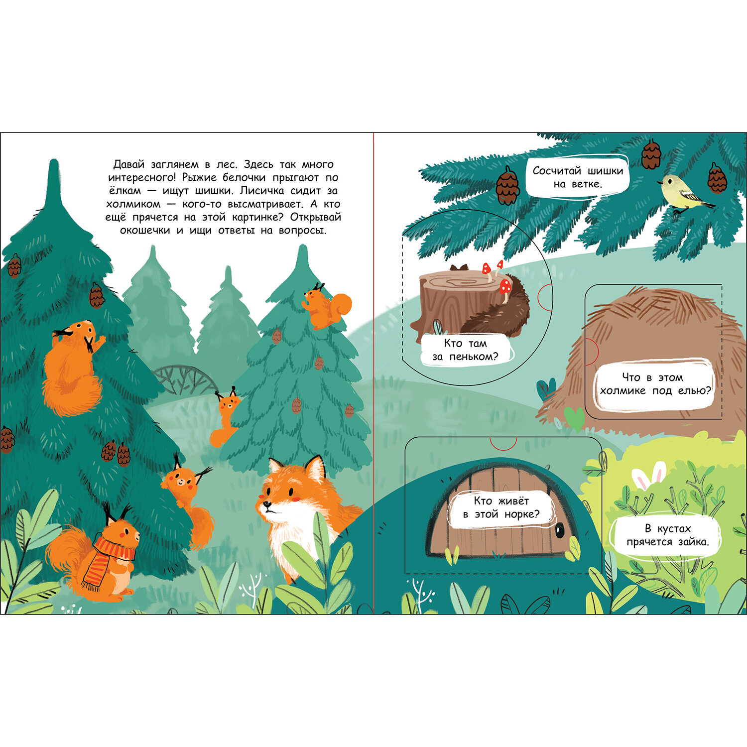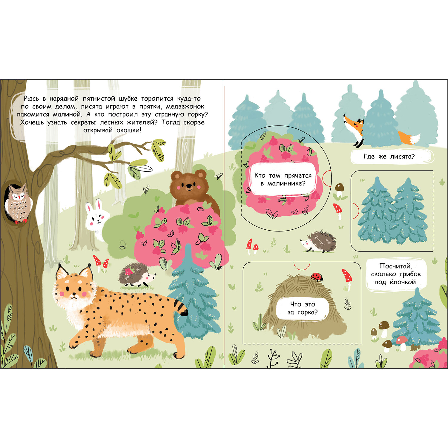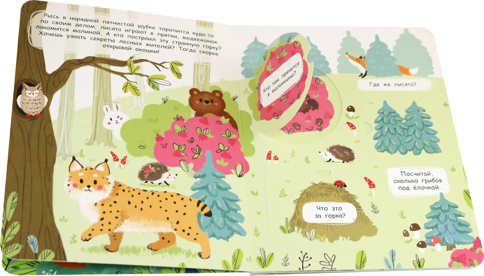 Добро пожаловать в лес! Сколько здесь всего интересного! Вот медвежата лакомятся малиной, а рядом лисята прячутся среди елочек. В дупле поселилось веселое беличье семейство, а бобры построили из веточек хатку на реке. Попросите малыша открыть все окошки и познакомьте его с обитателями леса. Скорее начинайте занятия - это будет невероятно весело! Книга с окошками для детей дошкольного возраста