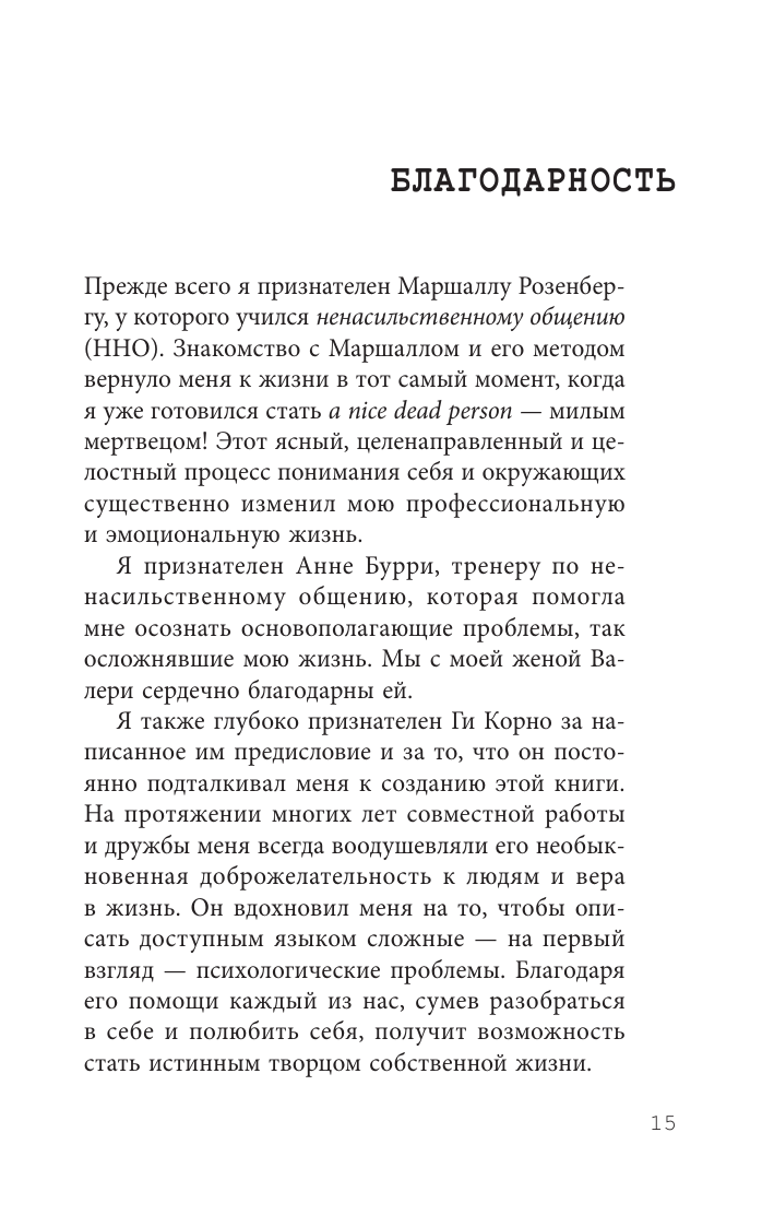 Если признать себе в своих истинных желаниях, то можно избежать массы проблем вобщении с окружающими. На этом утверждении основана уникальная методика "Ненасильственного общения", которая уже помогла тысячам супружеских пар, офисных сотрудников, родителей трудных подростков и самих подростков выстроить гармоничные отношения с другими людьми. Эта книга – настоящий учебник по тому, как без конфликтов, лести и самопожертвования всегда добиваться своего, оставаясь верным себе и свои потребностям.