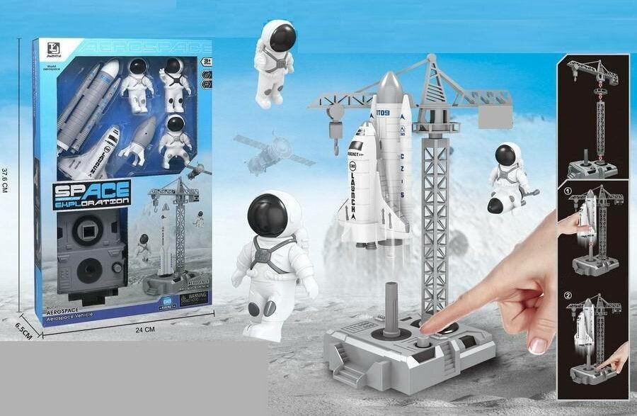 | Состав набора | стартовая площадка – 1 шт., штифт – 1 шт., кран - 4 детали, ракета – 2 шт., шаттл – 1 шт., мини-летательный аппарат – 1 шт., фигурка космонавта – 3 шт |