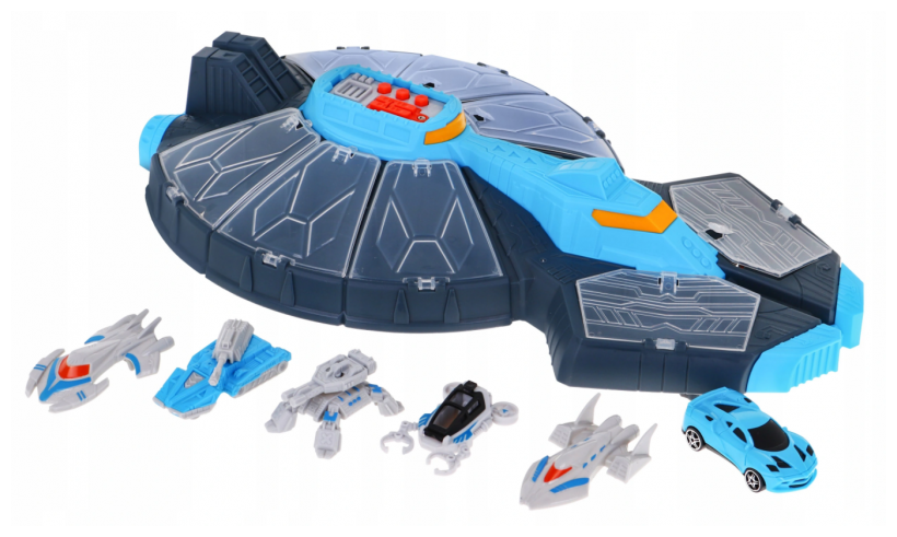 | Комплектация | Космический корабль - 1 шт, космический корабль-звездолет - 3 шт, боевые машины для защиты базы - 3 шт, батарейки AG13 -3 шт. |