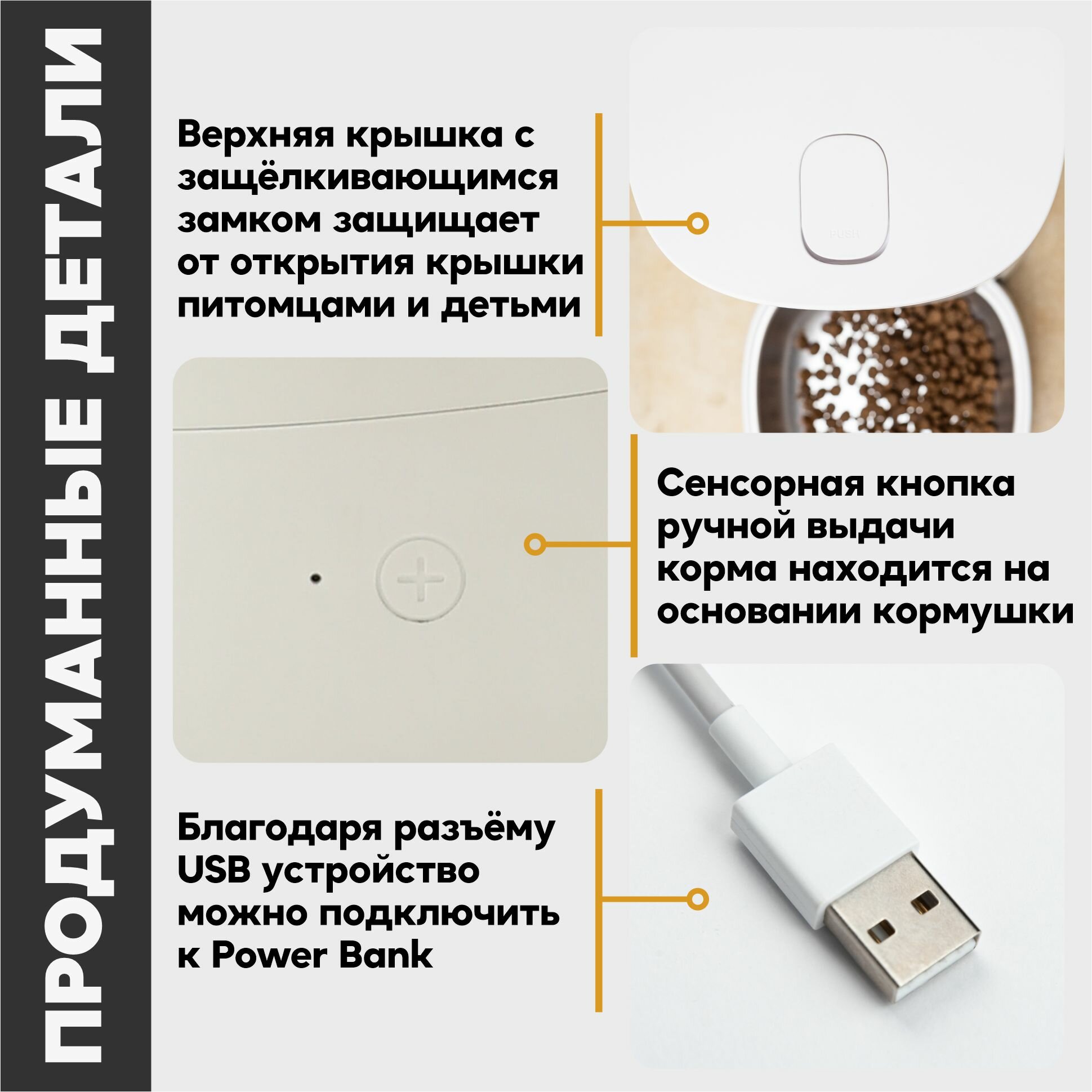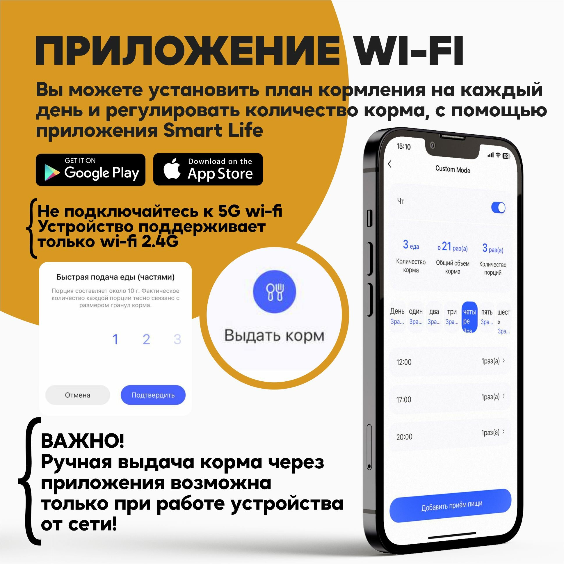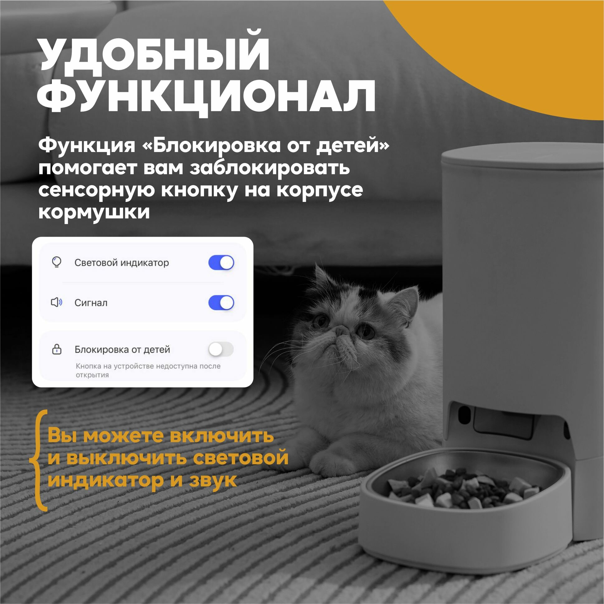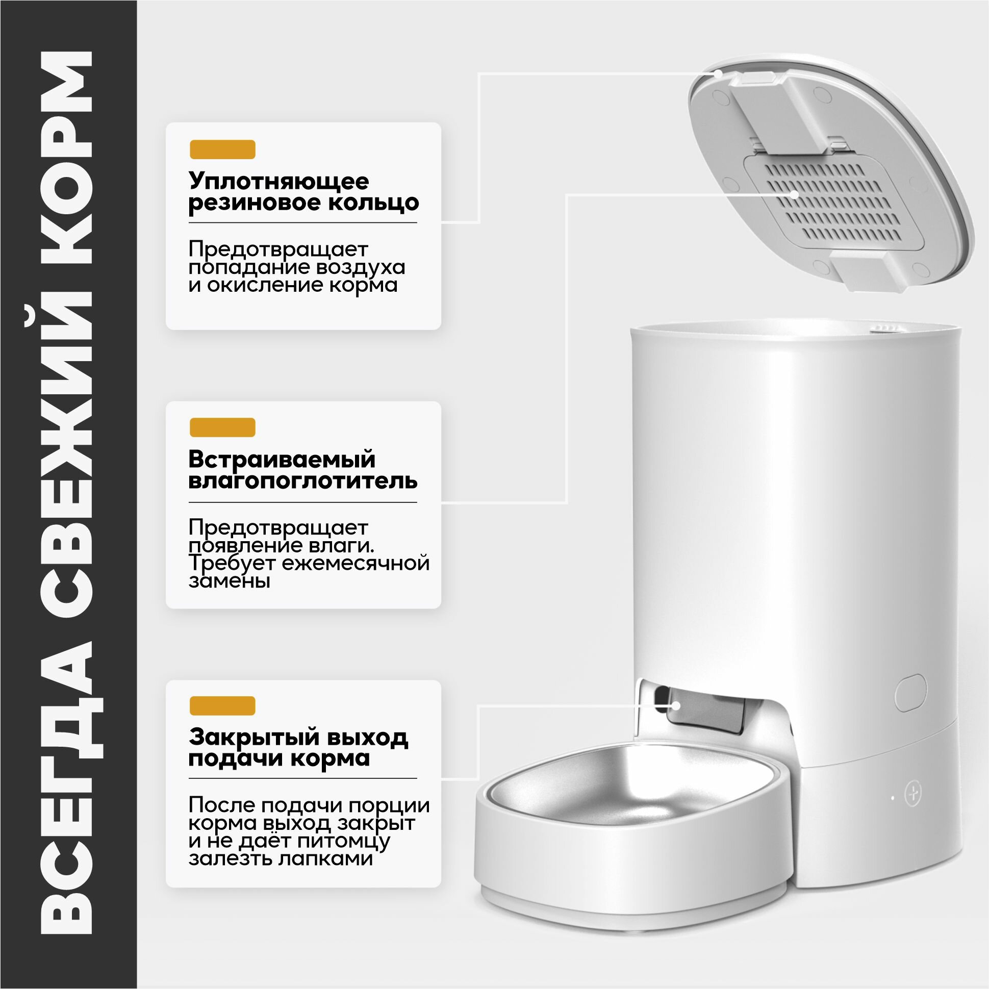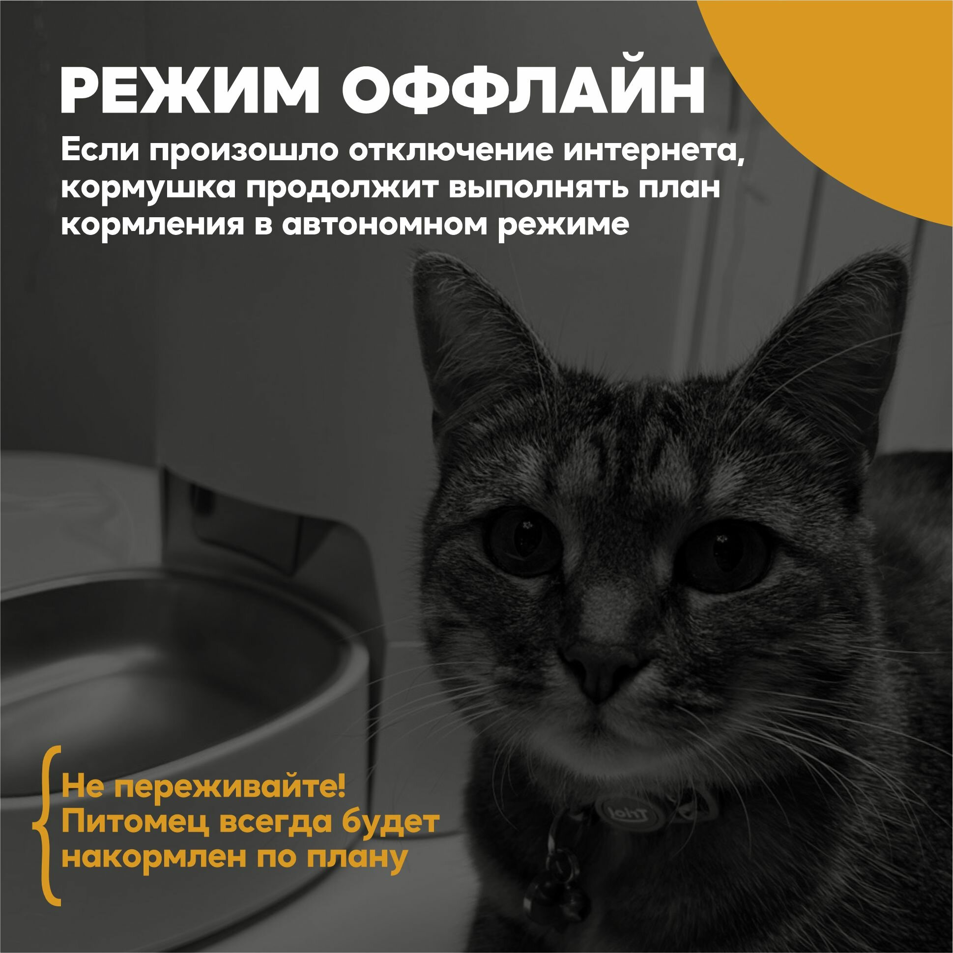 Эта кормушка настоящее спасение!_x000D_ Я теперь к корму подхожу раз в недели три — и то чтобы подсыпать его в кормушку._x000D_ _x000D_ В удобном приложении я настроила график кормления и указала количество порций, а дальше кормушка все делает сама)_x000D_ Я даже уезжаю теперь спокойно: знаю, что у кошек всегда будет свежий корм.
